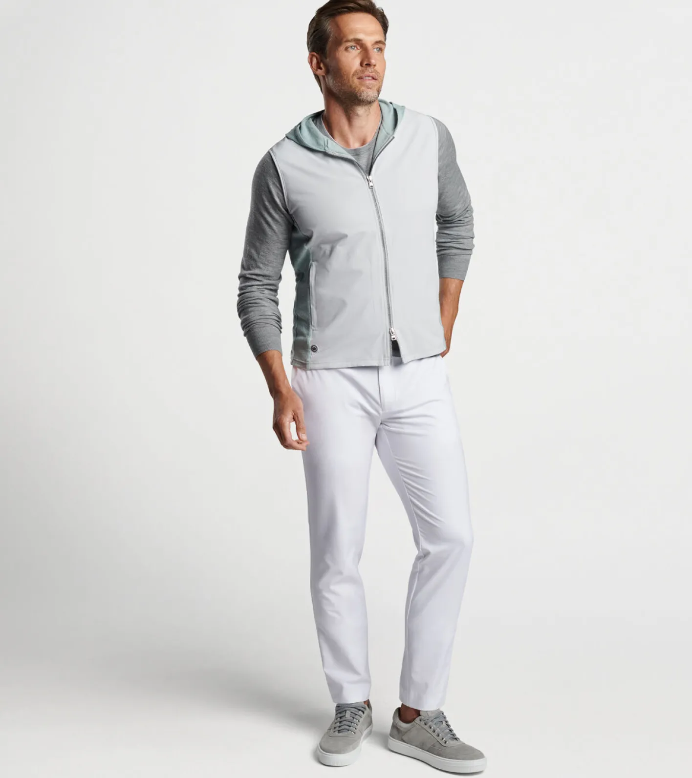 Best Peter Millar Solstice Performance Hybrid Full-Zip Hoodie Vest British Grey