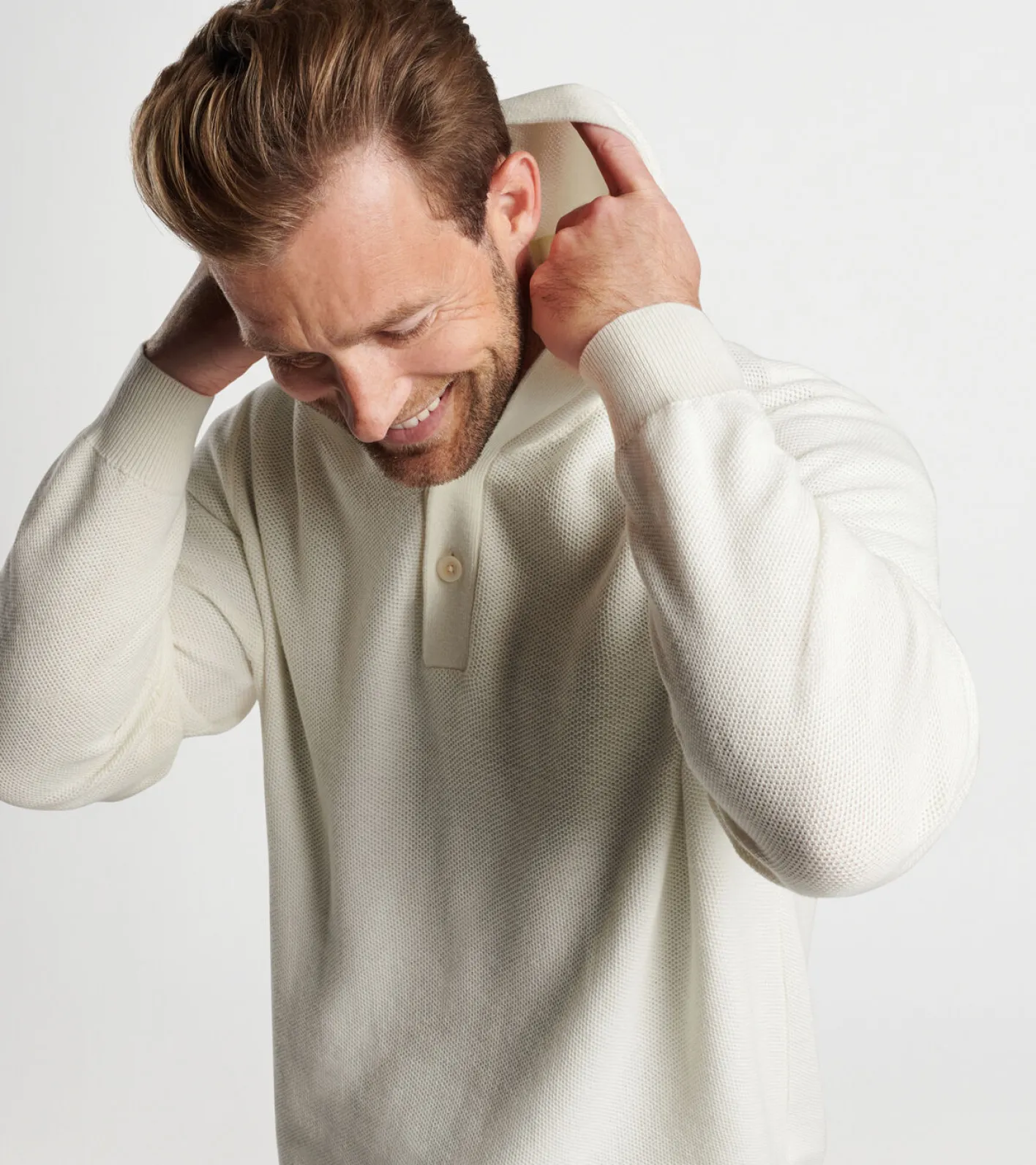 Clearance Peter Millar Hickory Henley Hoodie Sweater Almond
