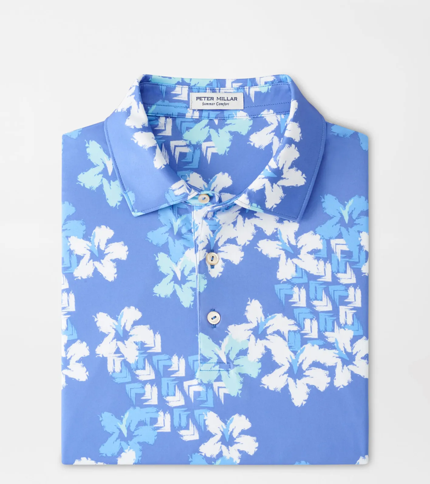 Discount Peter Millar Abstract Floral Performance Jersey Polo BONDI BLUE