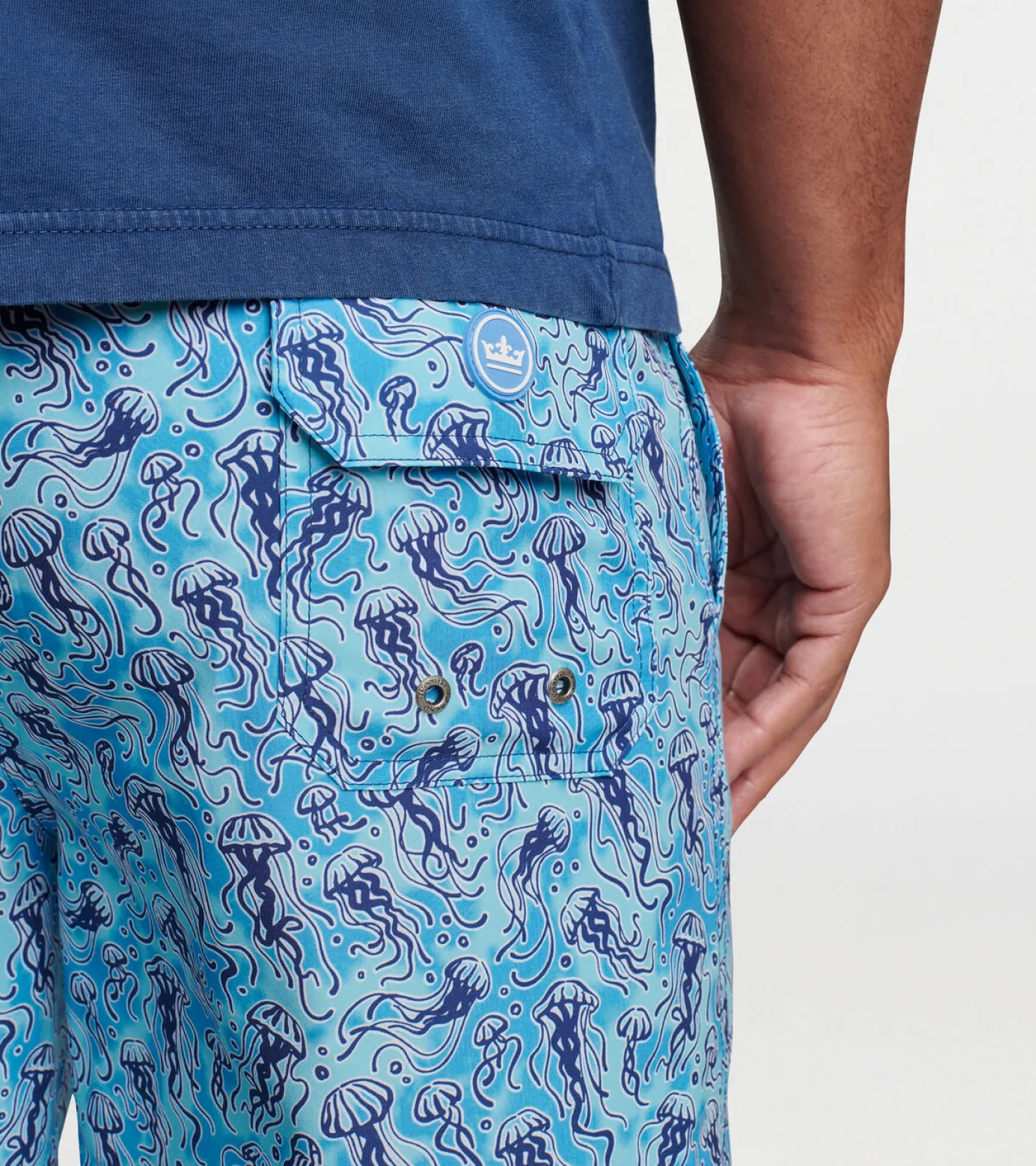 These swim trunks are a must-have for the beach or the pool. A quick-drying four-way stretch fabric, fine mesh liner and tagless construction provide all-day comfort. They feature an exclusive hand-designed jellyfish print made in our creative studio. Finished with a new 7″ inseam.