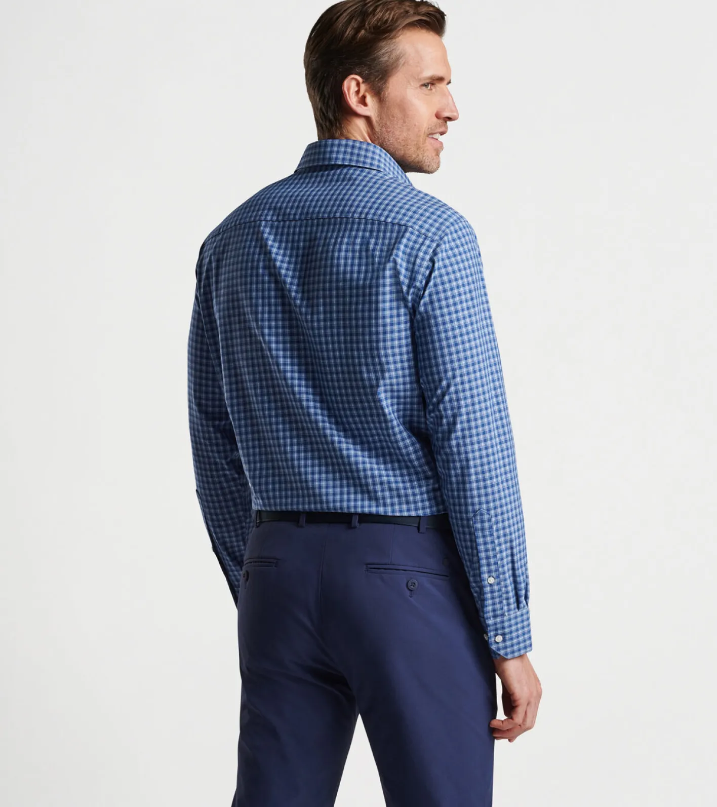 With the classic look of a poplin shirt in a sophisticated micro plaid, this design is crafted with a soft, dynamic and technical performance fabric. It features easy-care, two-way stretch, moisture-wicking and UPF 50+ sun protection. Finished with a button-down collar, French placket and mitered cuffs.