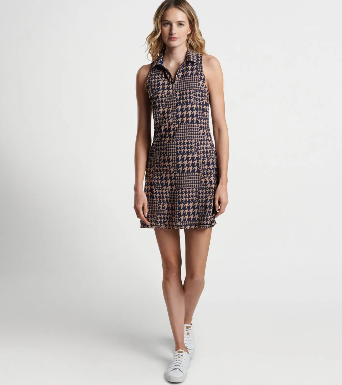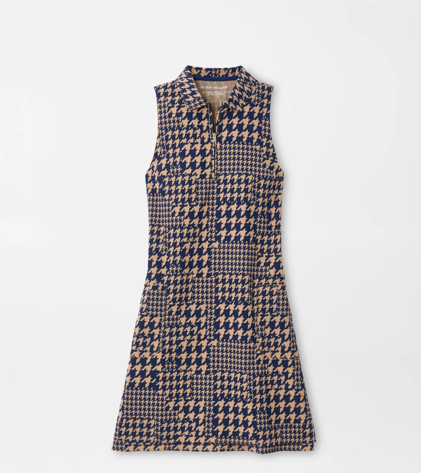 Fashion Peter Millar Carner Houndstooth Print Sport Dress Camel
