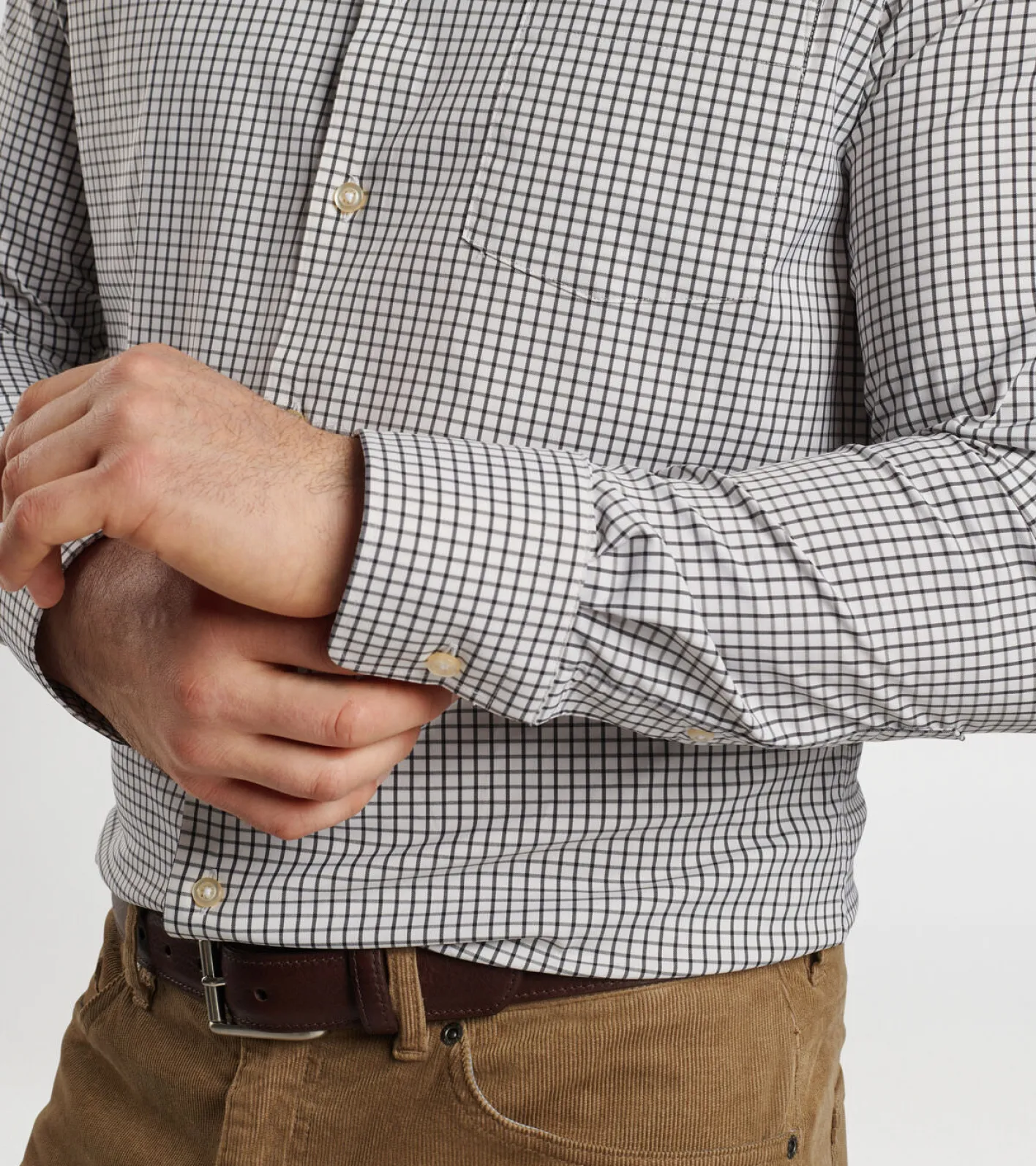 This sophisticated essential conveys the classic look of a twill shirt in an innovative, comfortable and versatile performance fabric. It features easy-care, two-way stretch, moisture-wicking and UPF 50+ sun protection. It features a classic check pattern and is finished with a button-down collar and a French placket.