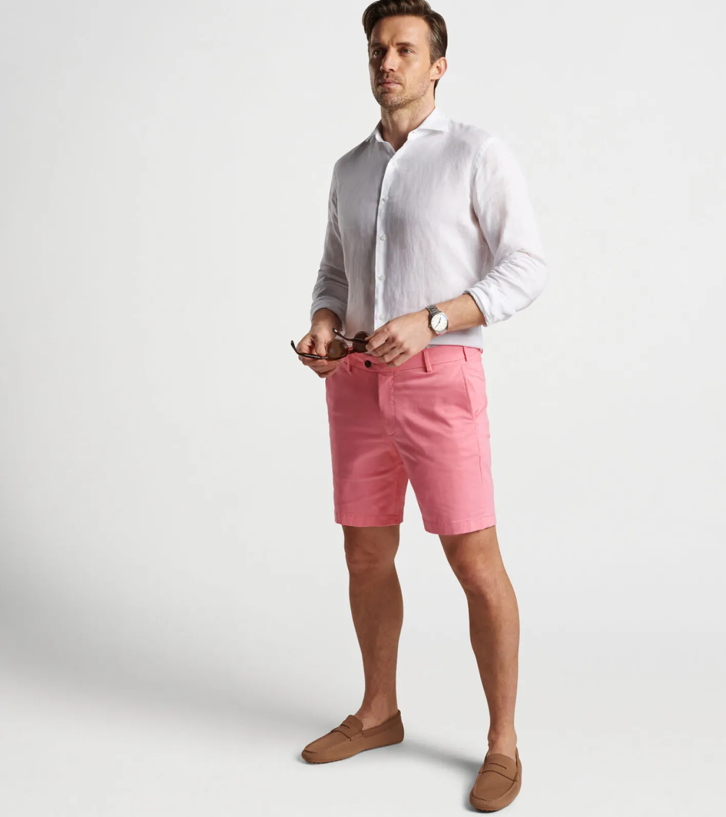 Timeless and elegant, this breathable linen sport shirt is an ideal option for warm weather getaways. It’s garment-dyed to express a soft, casual character and finished with an Italian-inspired spread collar.