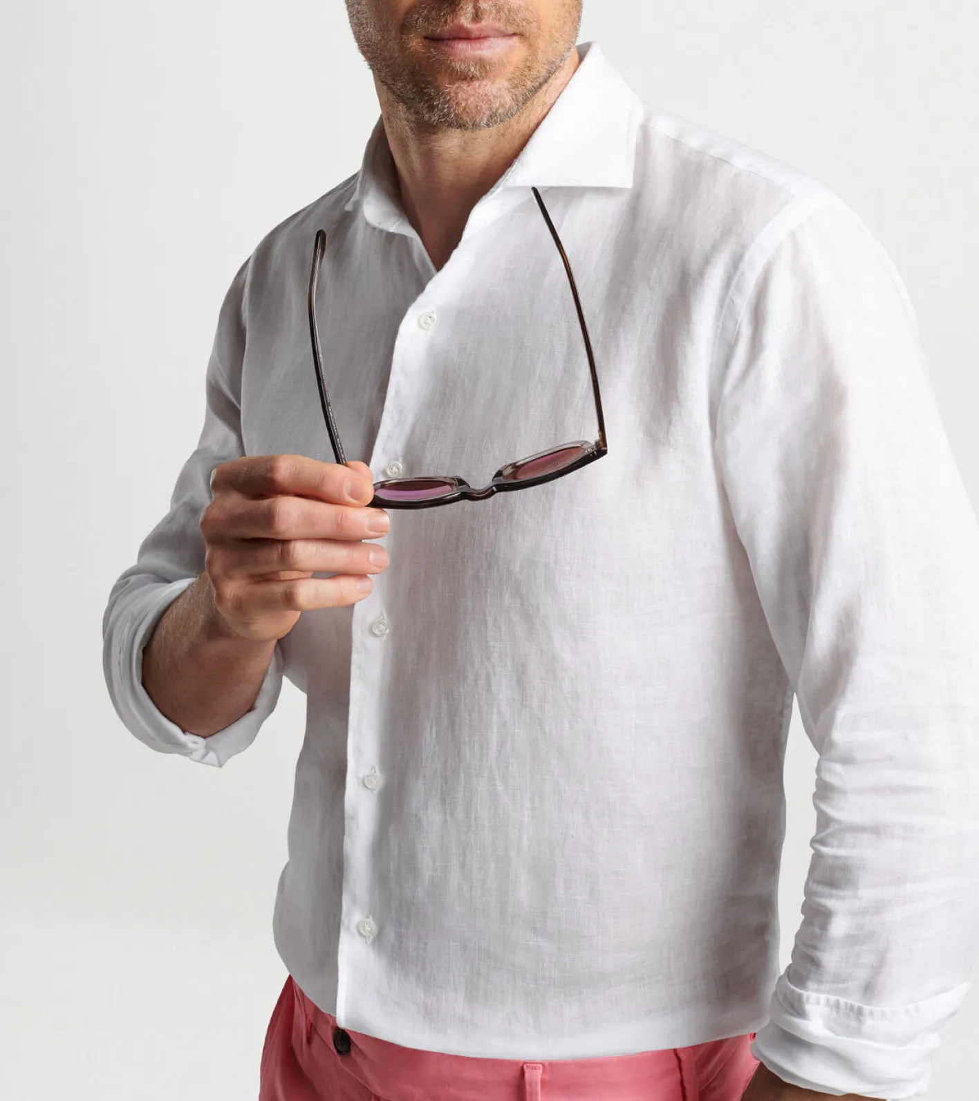 - Men’s 100% linen sport shirt