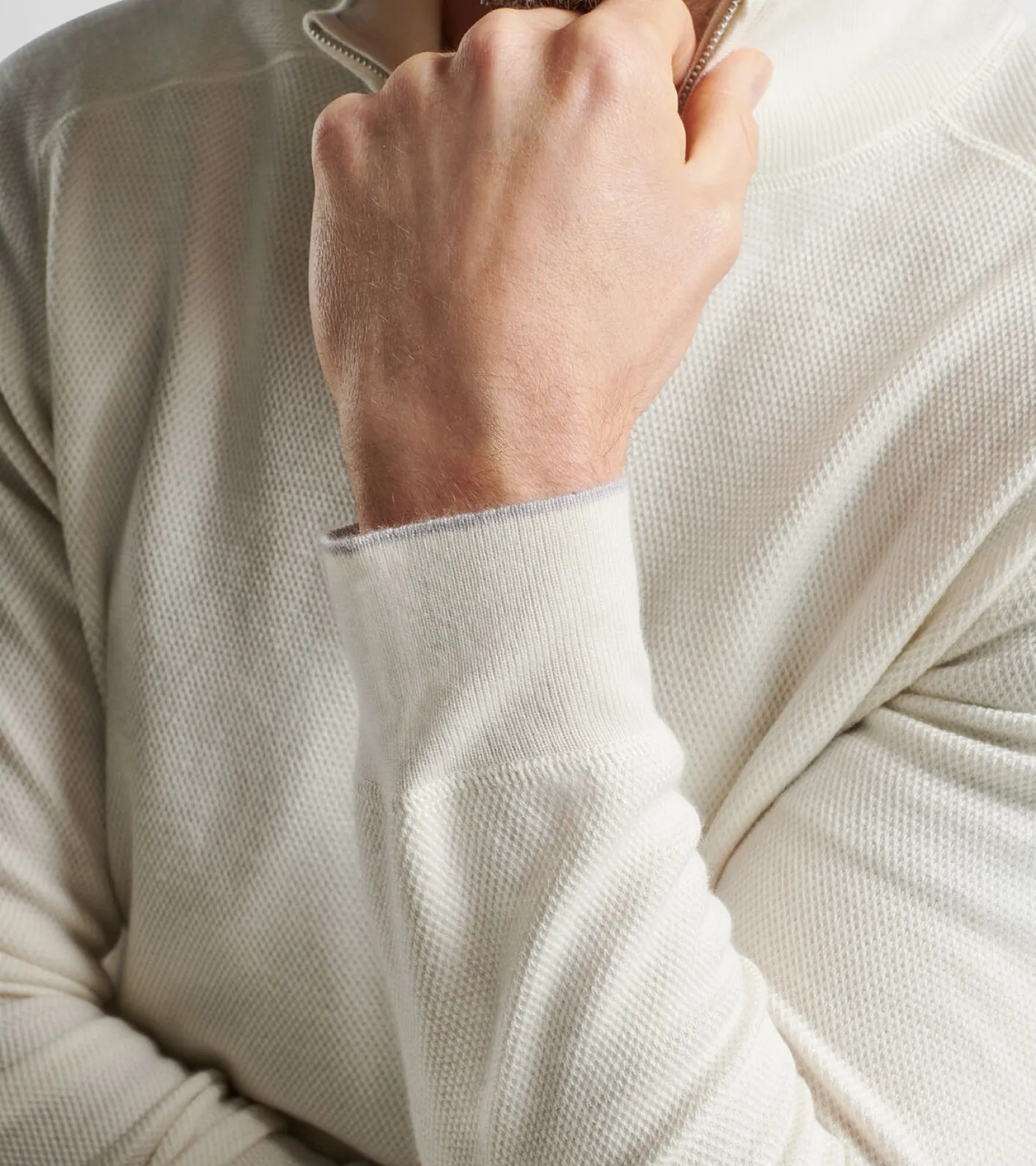 Fashion Peter Millar Voyager Cashmere-Silk Saddle Shoulder Quarter-Zip FAWN