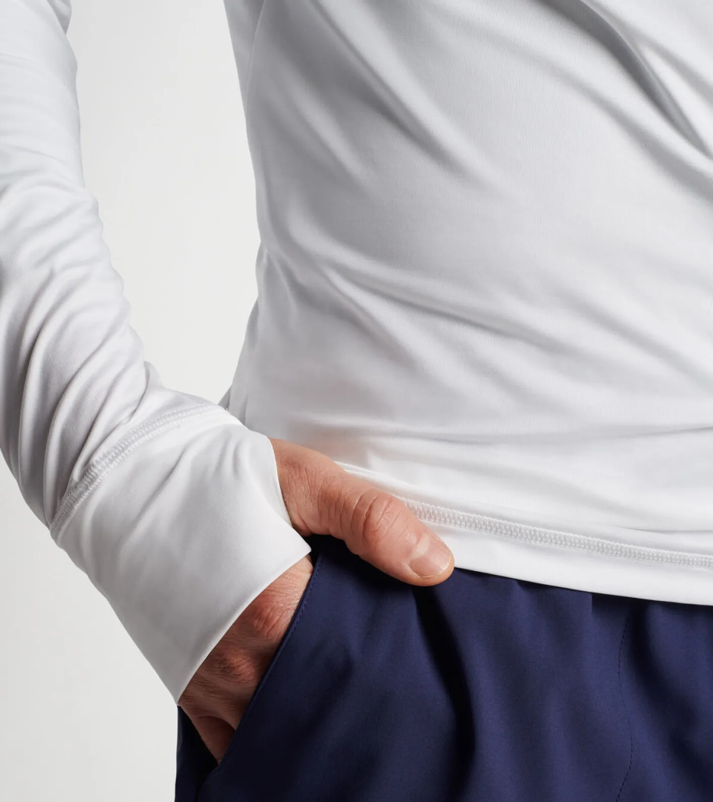 This quarter-zip is designed with an incredibly-soft and lightweight performance yarn that provides four-way stretch, wicking, antimicrobial and easy-care properties perfect for your next session at the gym. A covered zipper placket and slight heathering make this a clean and sophisticated option for cooldowns and weekend relaxation.