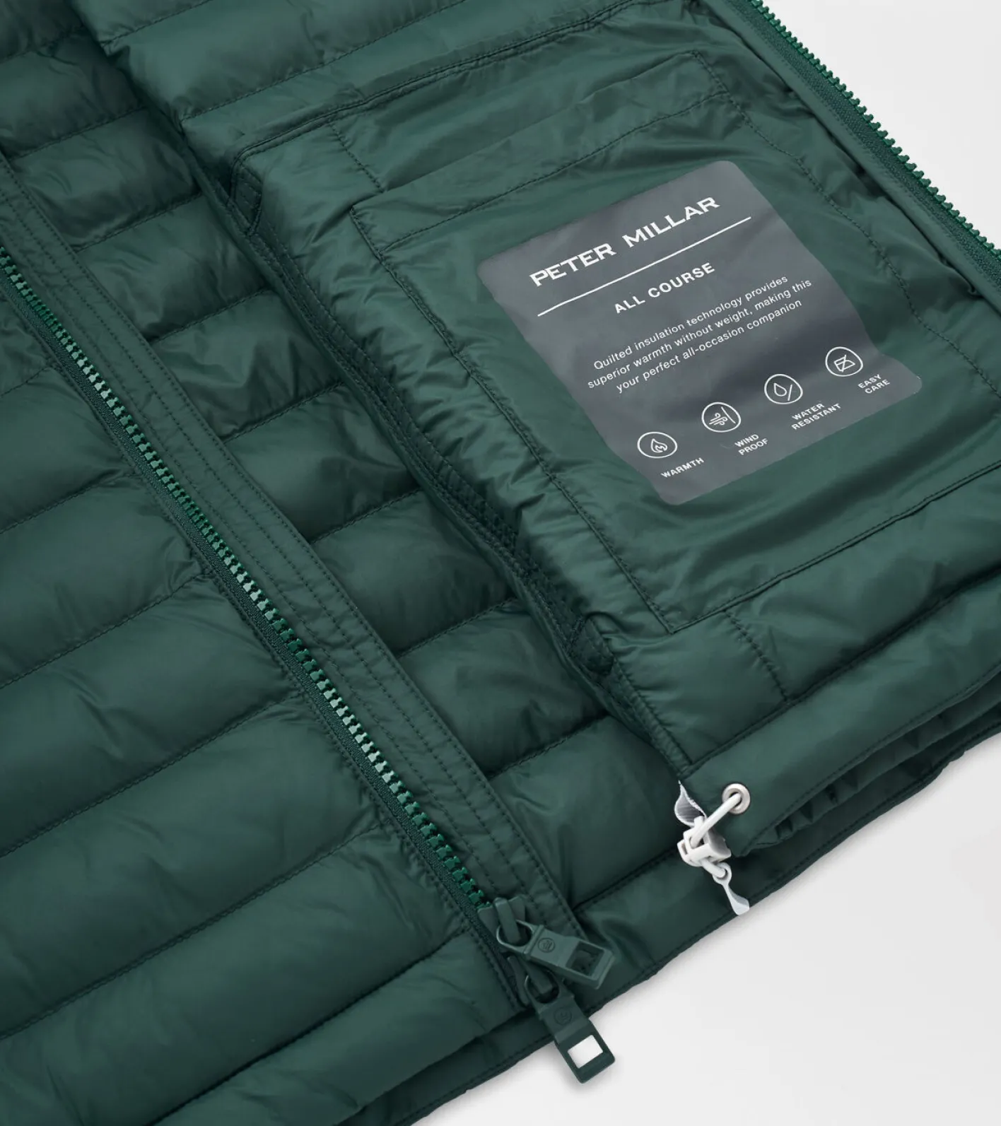 An essential performance layer designed with loose fill channel insulation, the All Course Vest offers warmth without weighing you down and water-resistant protection. It’s finished with a rubber Crown patch on the right shoulder, two side-zip pockets and a two-way zip front closure.