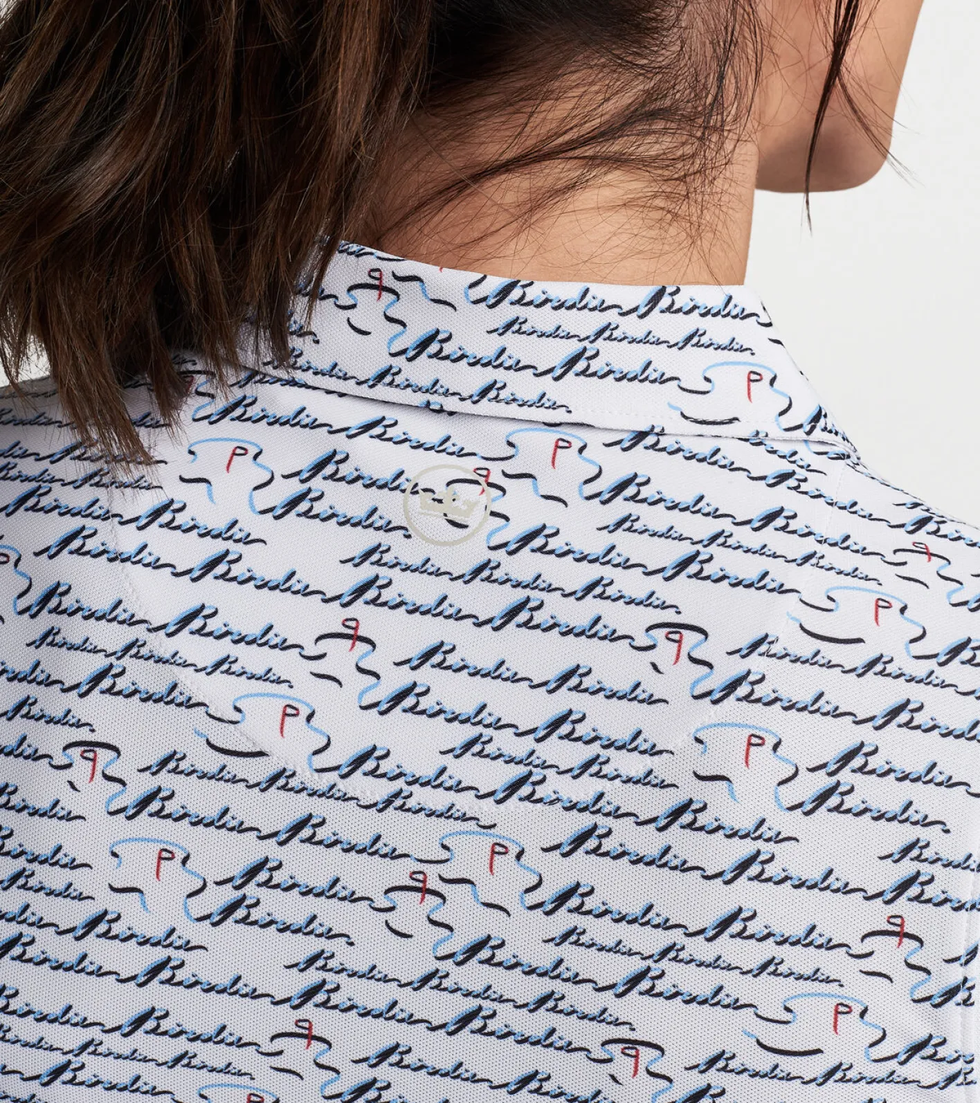 New Peter Millar Banded Sport Mesh Birdie Print Sleeveless Button Polo White