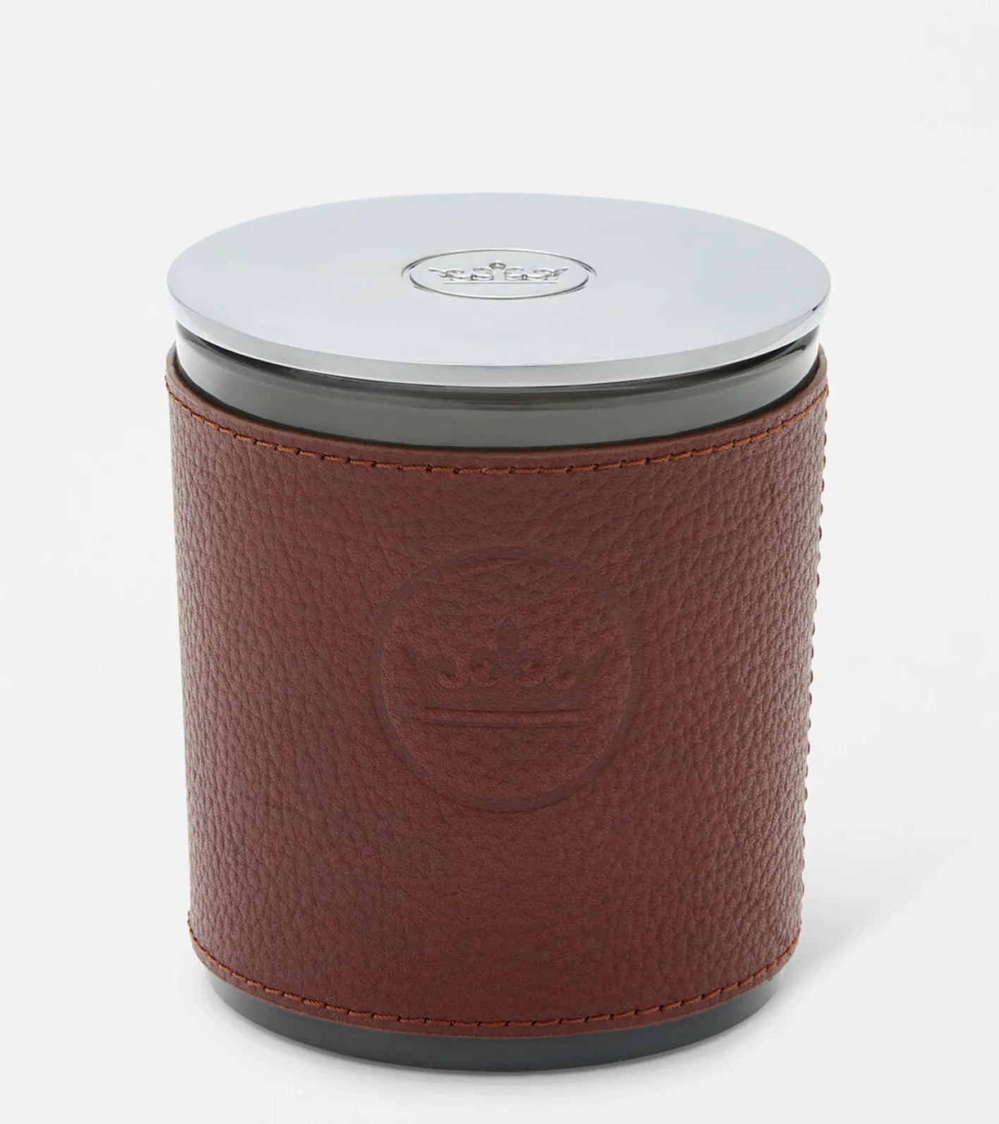 Translated from Peter Millar’s Crown cologne into a luxurious home accent, the Crown Candle manifests woody-spicy notes of birch and leather, blended with Madagascar black pepper. This hand-poured candle features a premium, debossed leather casing, impressive 40-hour burn life and a Zamac metal lid.