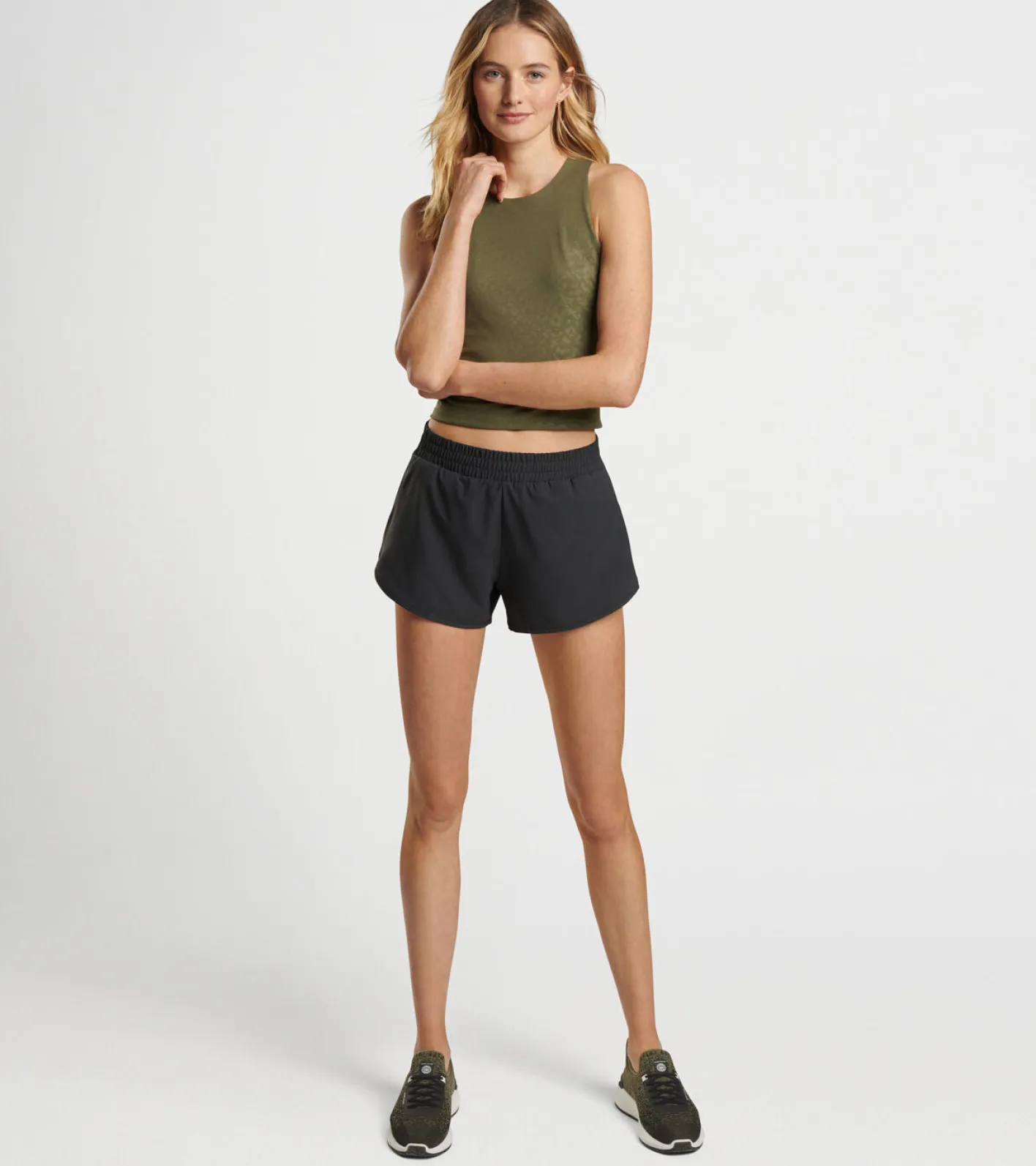 The Meridian Running Short is made from a lightweight and incredibly soft performance fabric defined by comfort and breathability. A 3″ inseam and gathered waistband offer a perfected fit, with a scooped track-short silhouette. Finished with a discrete mesh brief and a small interior key pocket for extra utility.