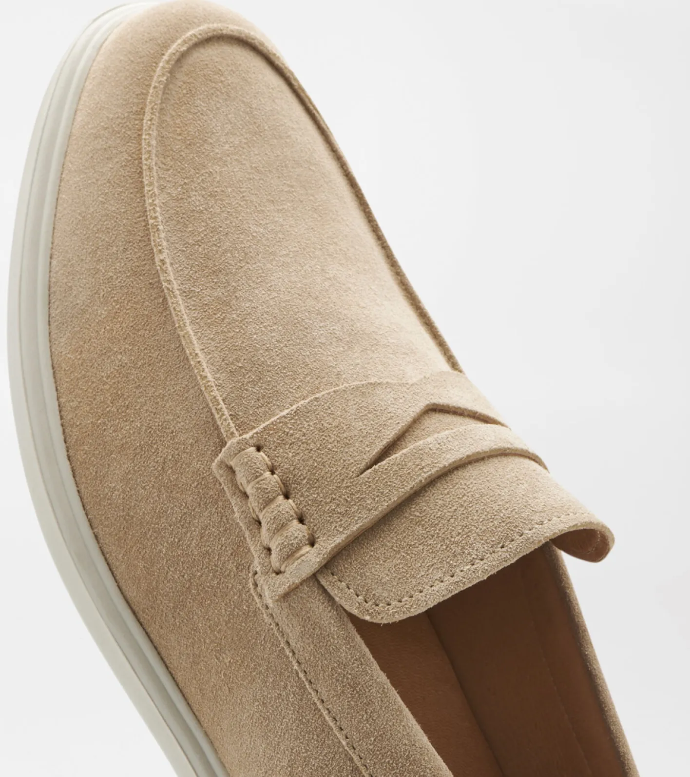 This elevated loafer is crafted in Brazil from supple water-resistant suede, with a soft velvet-like nap. Hand-stitched detailing combined with an ultra-lightweight EVA outsole creates a model of understated style and versatility.