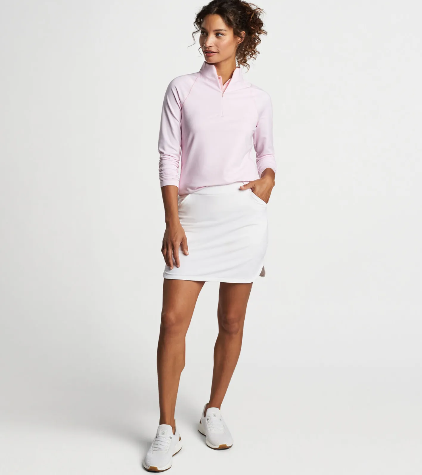This essential second layer is made from our lightweight stretch jersey fabric to deliver enhanced comfort and mobility. The fabric features four-way stretch, moisture-wicking, UPF 50+ sun protection and easy-care for optimal performance. Finished with a mock collar and a quarter-zip closure.