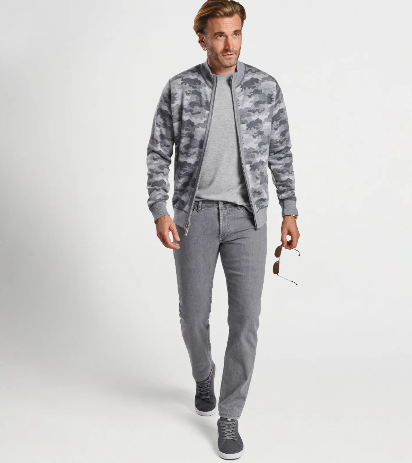 Made from a remarkably soft Merino wool in a double birdseye stitch, this fully reversible cardigan channels a classic grey color on one side and a bold camo pattern on the other. Finished with casual cover stitching and a two-way zipper.