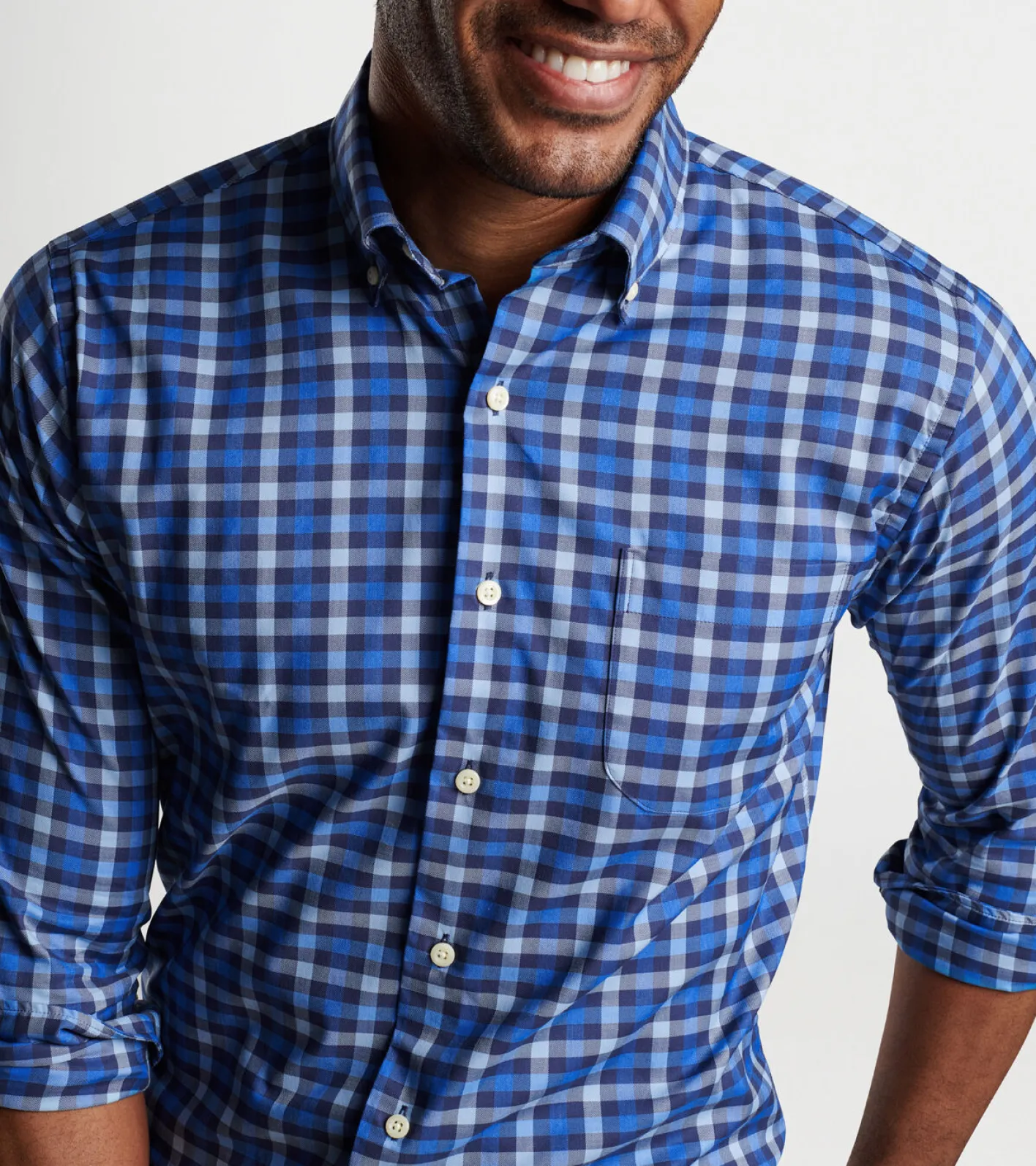 This sport shirt is made from a comfortable cotton-performance twill with stretch and softness. It’s finished with a button-down collar, French placket and double-button barrel cuffs.