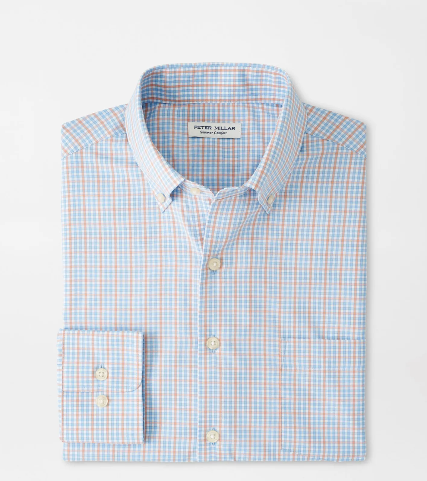 Sale Peter Millar Polk Performance Twill Sport Shirt Cottage Blue