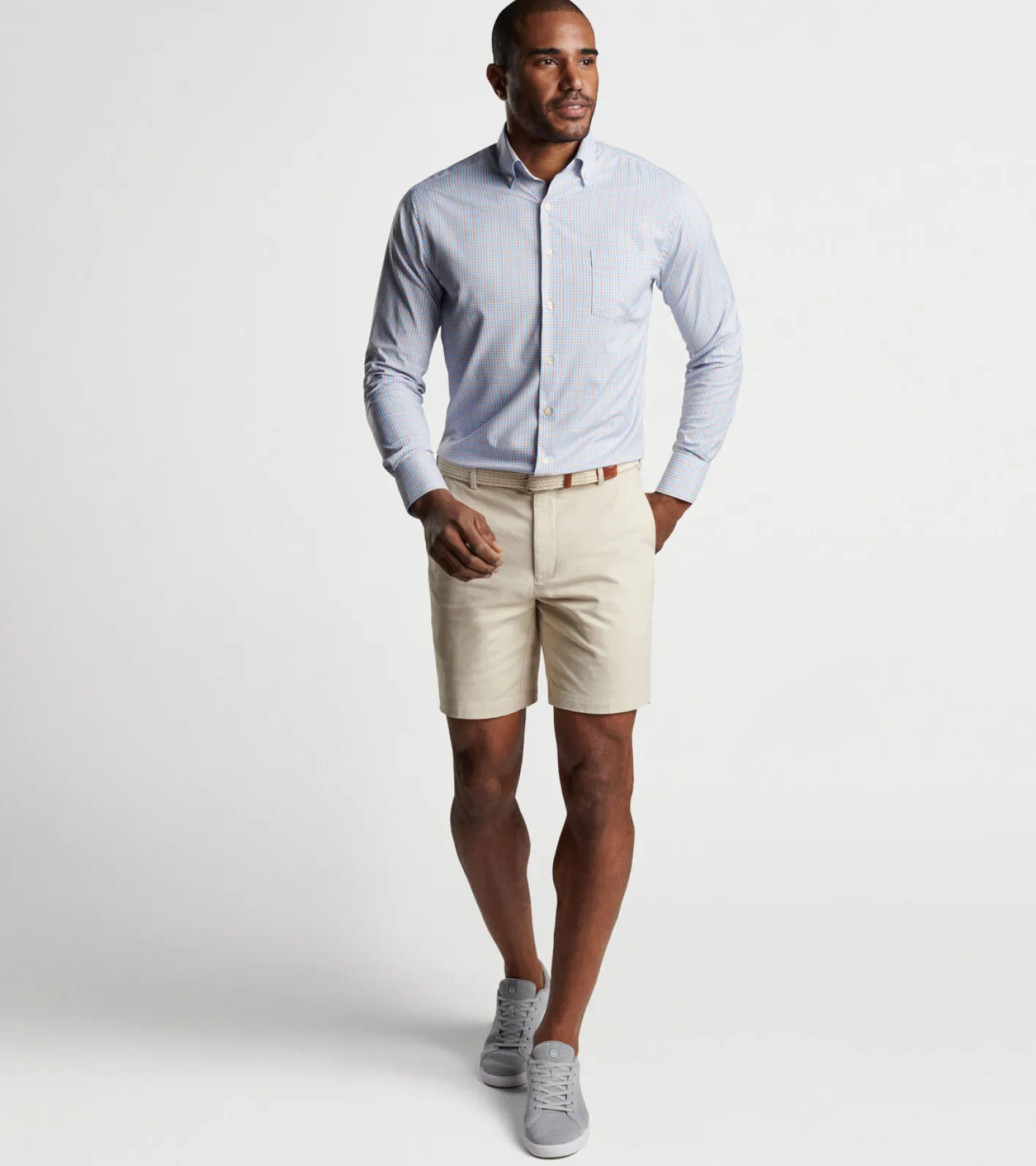This sophisticated essential conveys the classic look of a twill shirt in an innovative, comfortable and versatile performance fabric. It features easy-care, two-way stretch, moisture-wicking and UPF 50+ sun protection. It features a classic check pattern and is finished with a button-down collar and a French placket.