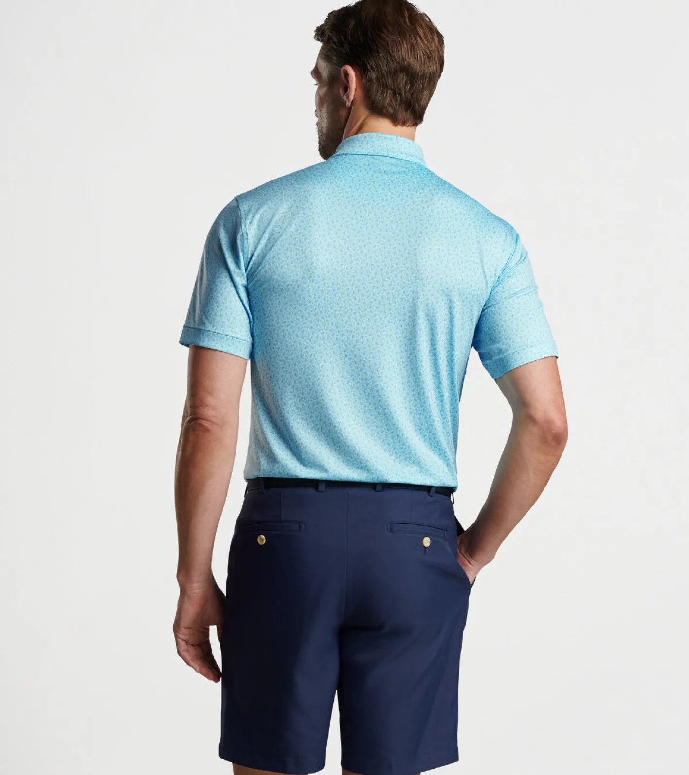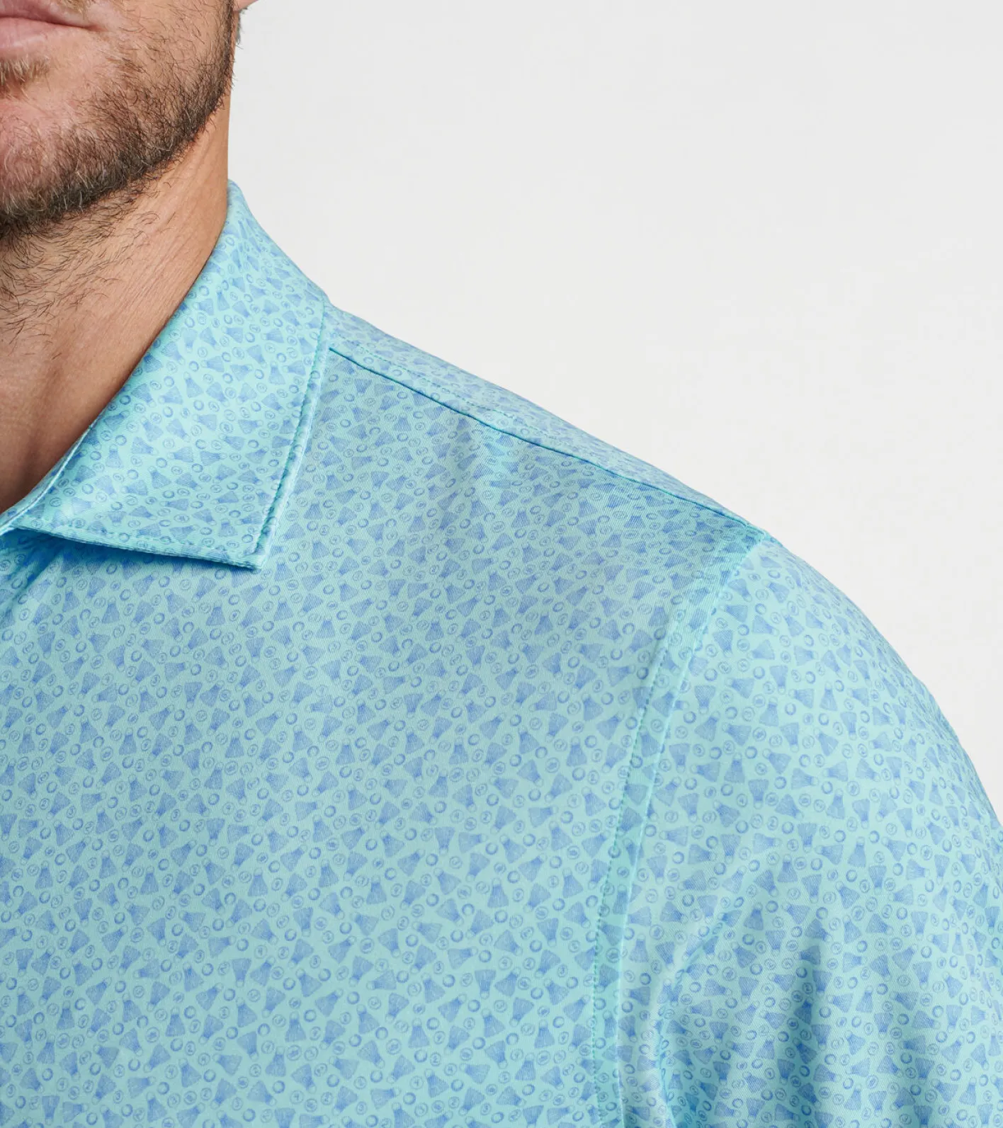 Enjoy incredible comfort wherever your day takes you in one of our signature performance polos. They’re made from a soft antimicrobial jersey fabric that features wicking, UPF 50+ sun protection and easy-care, with four-way stretch for optimal mobility on and off the golf course. This polo features a custom-designed badminton-inspired print for one-of-a-kind style. Finished with a Sean self-fabric collar and three-button placket.