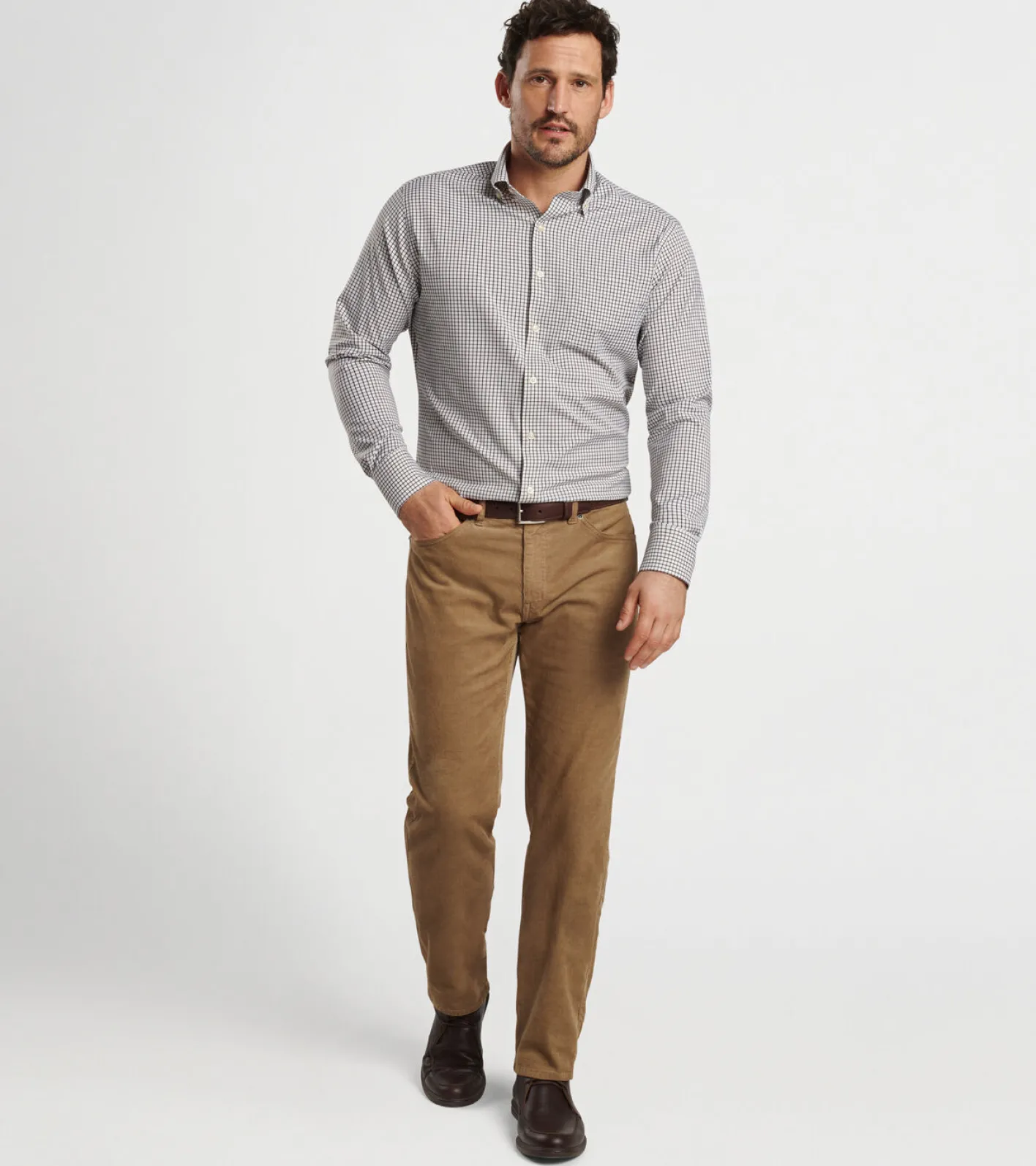 This sophisticated essential conveys the classic look of a twill shirt in an innovative, comfortable and versatile performance fabric. It features easy-care, two-way stretch, moisture-wicking and UPF 50+ sun protection. It features a classic check pattern and is finished with a button-down collar and a French placket.