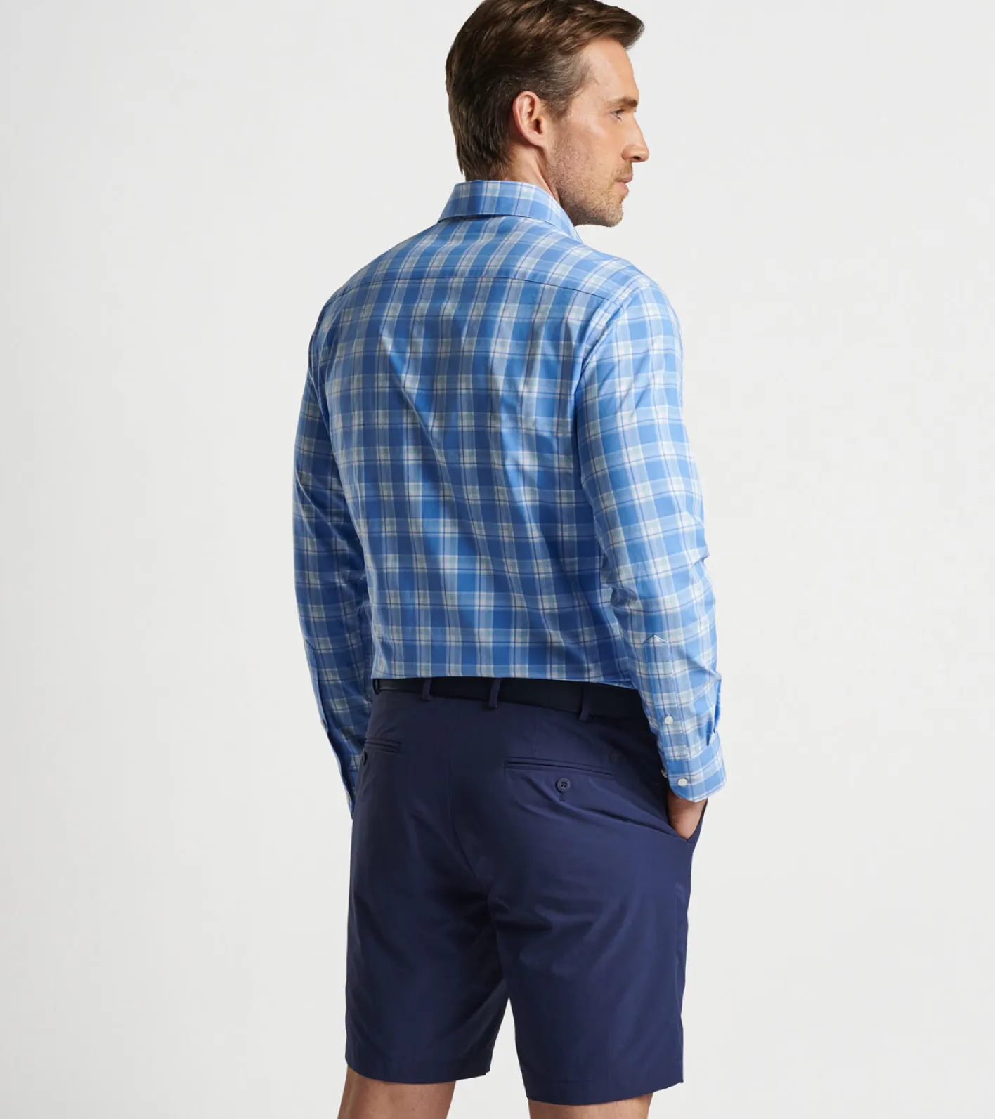 This sophisticated essential conveys the classic style of a poplin shirt in an innovative and comfortable performance fabric. It features an easy-care fabric that offers two-way stretch, moisture-wicking and UPF 50+ sun protection. Finished with a spread collar, French placket and mitered cuffs.