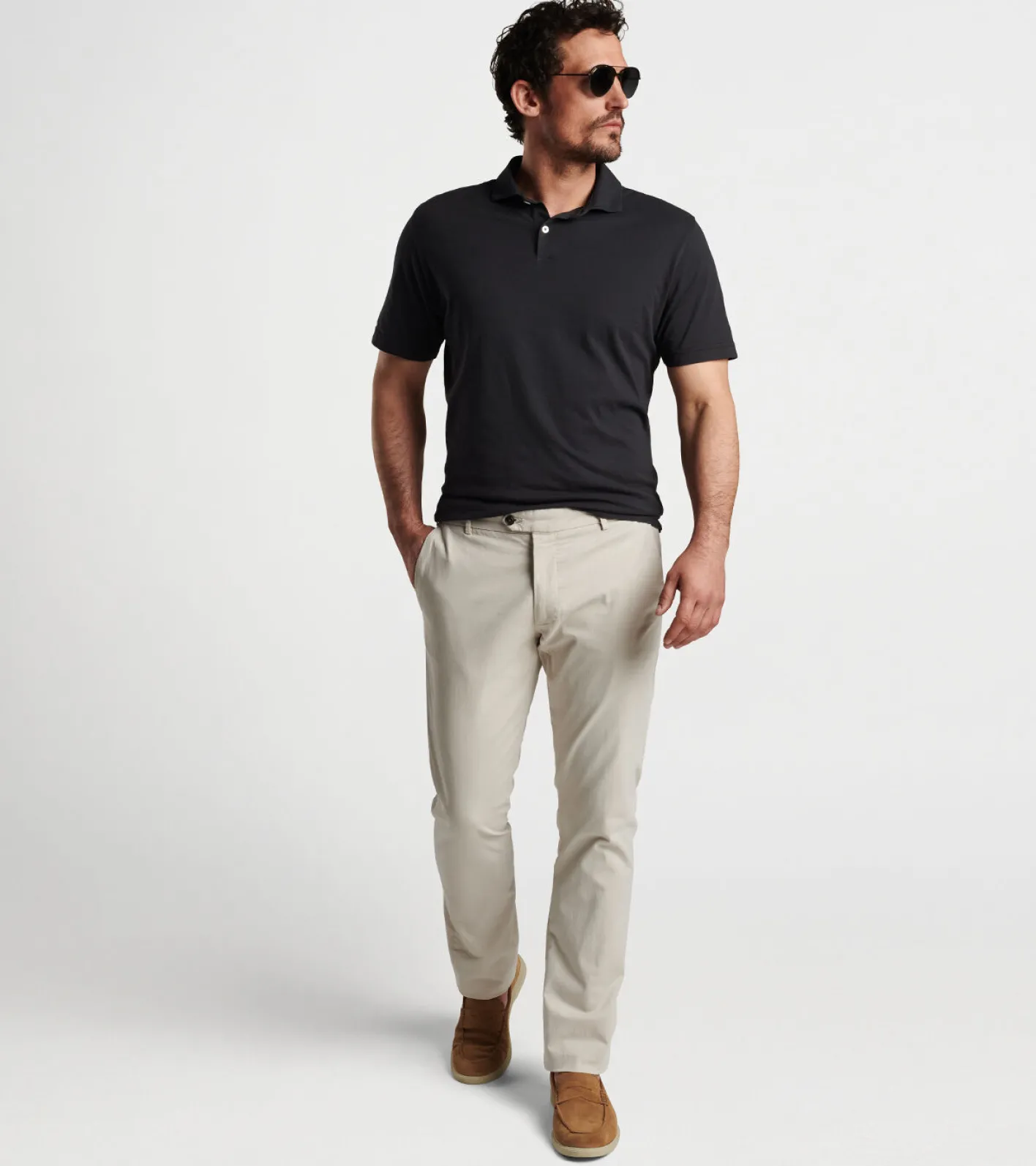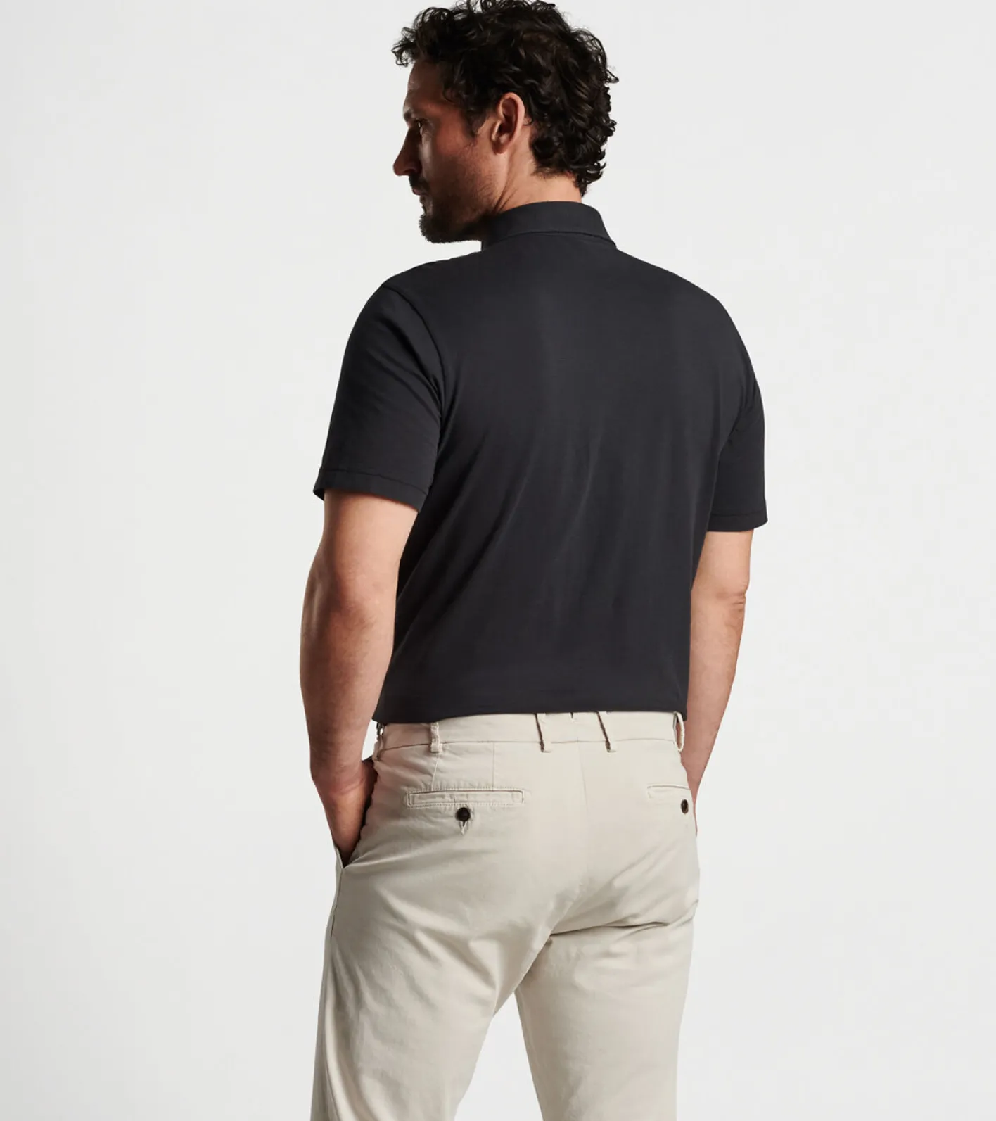 Crafted in Peru from exceptional 80s two-ply Peruvian Pima cotton, these polos embody elegant ease in a lightweight, casual design. An intricate garment dye and garment wash creates rich, deep colors and striking softness, while the slub texture conveys a relaxed quality. Finished with a modern, Italian-inspired cutaway collar, a slightly shorter length for casual wear and a two-button placket with mother-of-pearl buttons.