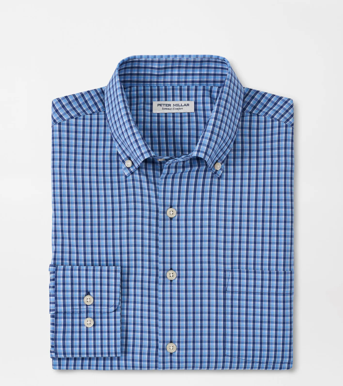 This classic sport shirt is made from a performance twill fabric that offers two-way stretch, moisture-wicking and UPF 50+ sun protection. It features a classic plaid pattern and is finished with a button-down collar and a French placket.