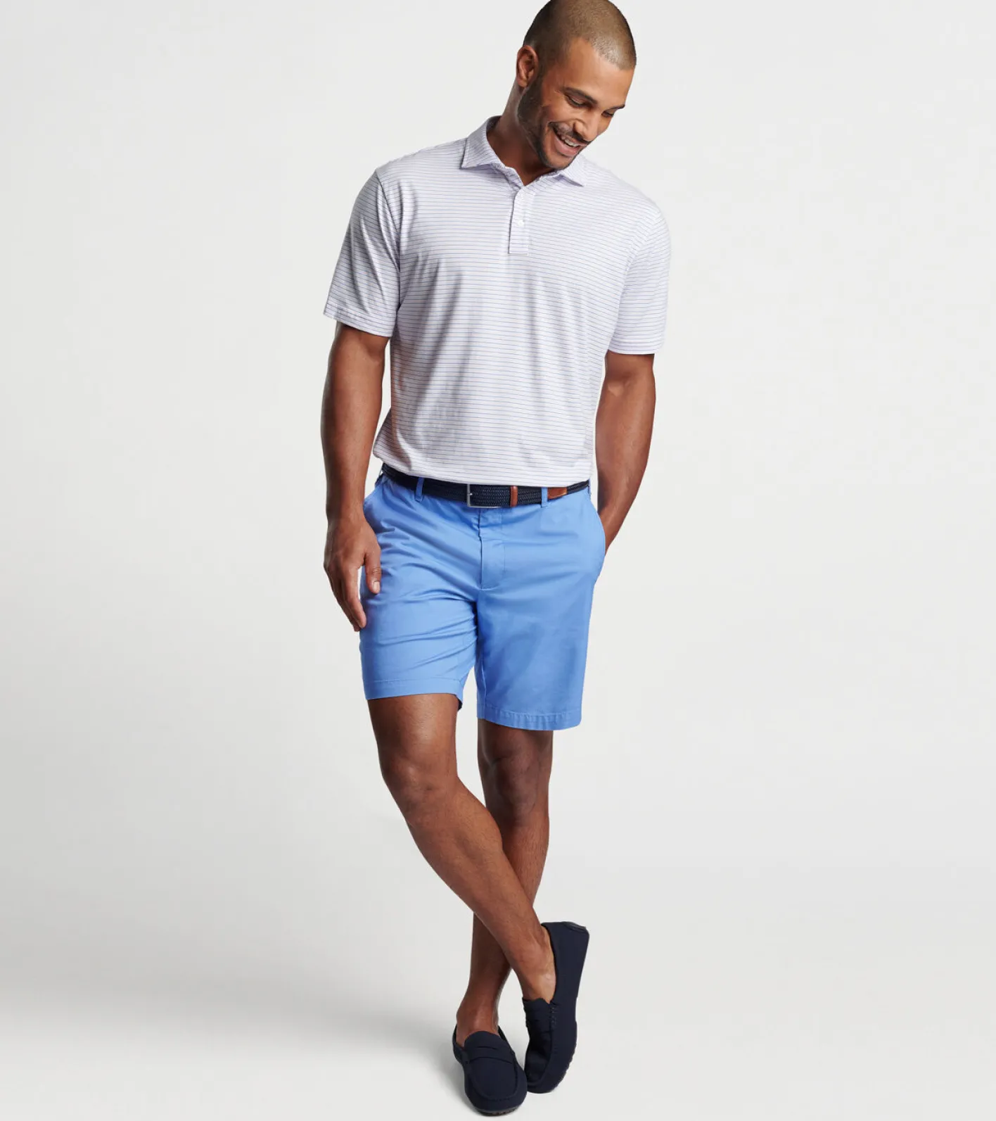 A new short for the season, these versatile classics are made from a plain weave fabric that gives them a traditional texture and feel, with stretch mobility and all-day comfort. Specially washed to enhance softness, they’re finished with a mid-length 8” inseam.
