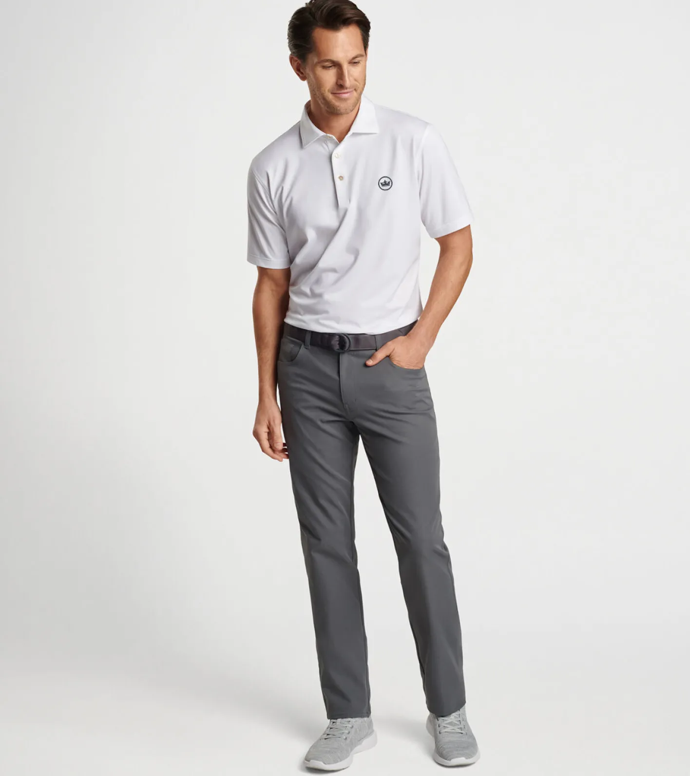 Our acclaimed performance polo offers visual refinement and technical benefits that make it a staple in any wardrobe. An innovative performance jersey construction facilitates technical benefits like moisture-wicking, odor control, UPF 50+ sun protection and easy-care. Ideal four-way stretch offers ease of movement and prevents torque when swinging a golf club. Finished with our Crown Seal logo embroidered on the left chest.