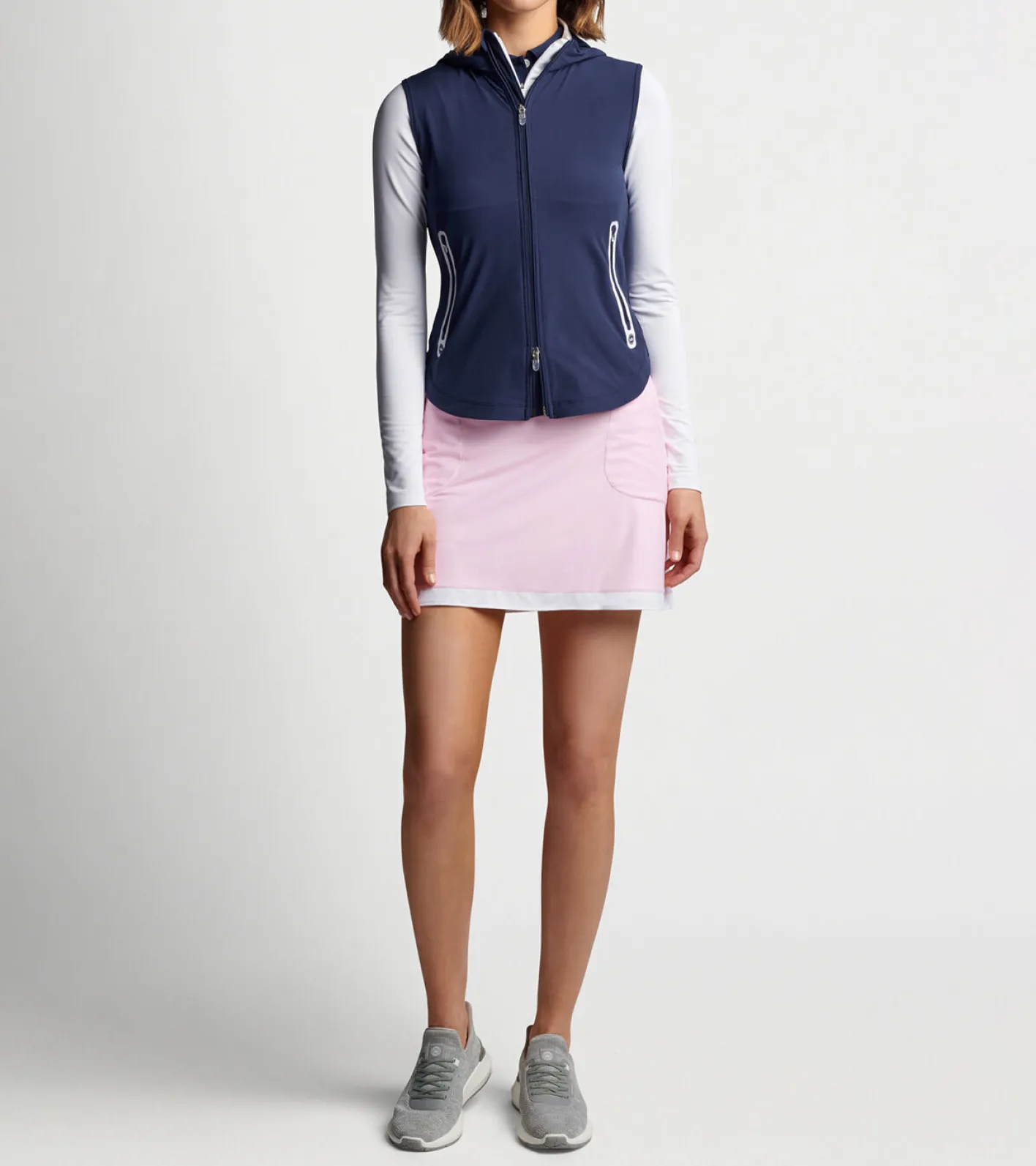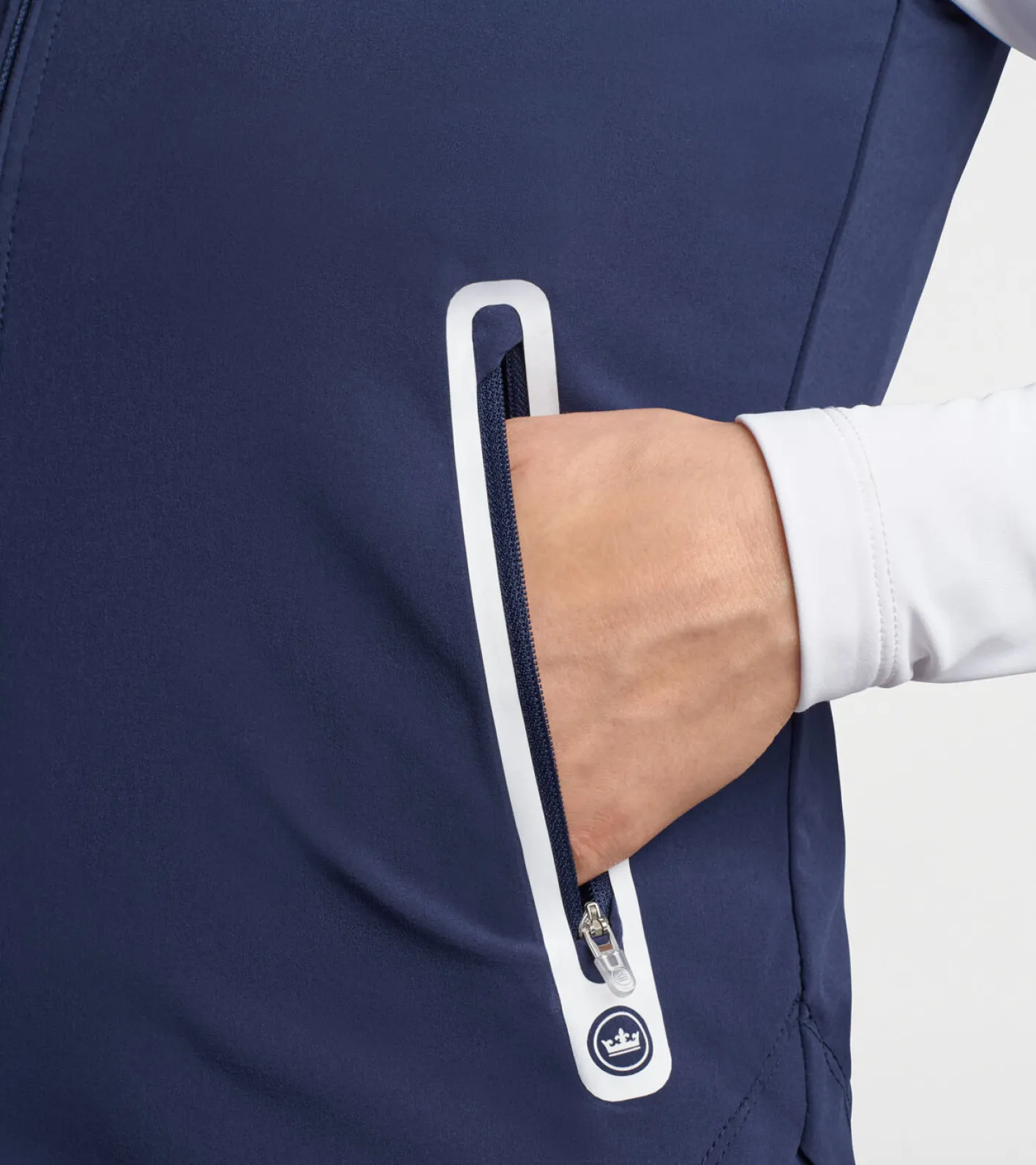 The Jameson Hooded Vest is engineered from the most flexible fabric we’ve ever developed. Four-way stretch provides ultimate mobility and comfort on the course, while lightweight, cutting-edge construction allows the fabric to naturally adapt to conditions—blocking wind when idle and opening up for optimal airflow when in motion. A fitted design shapes the form and offers a sleek aesthetic. Finished with a two-way zip front and a curved hem.