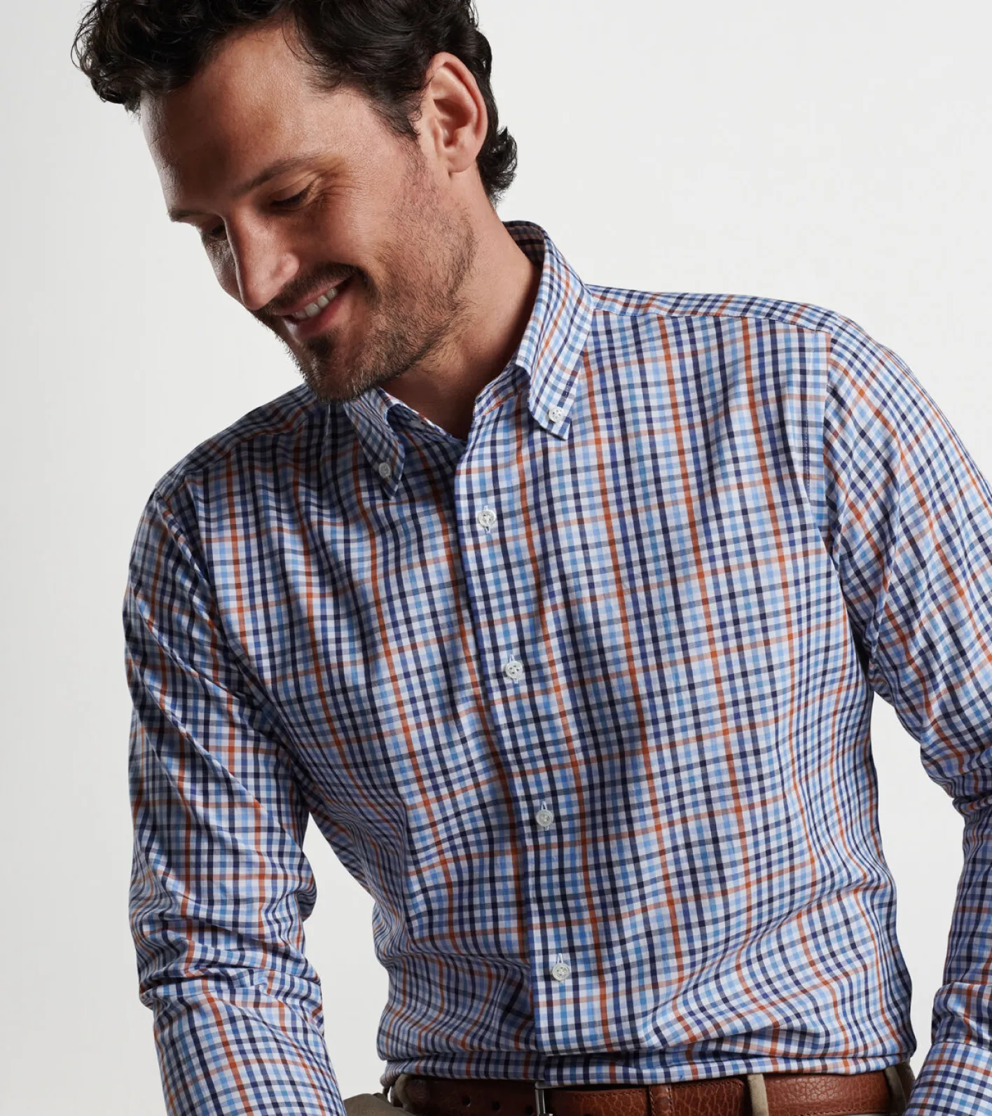 New Peter Millar Lenox Cotton Sport Shirt Navy
