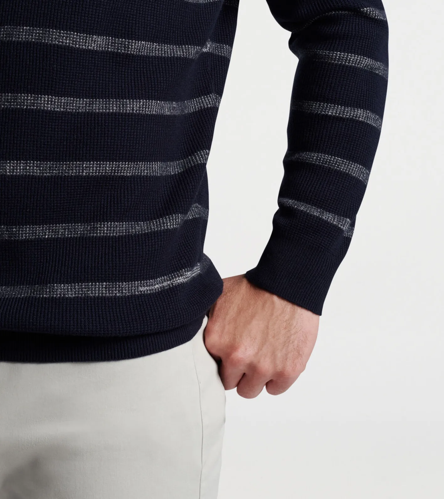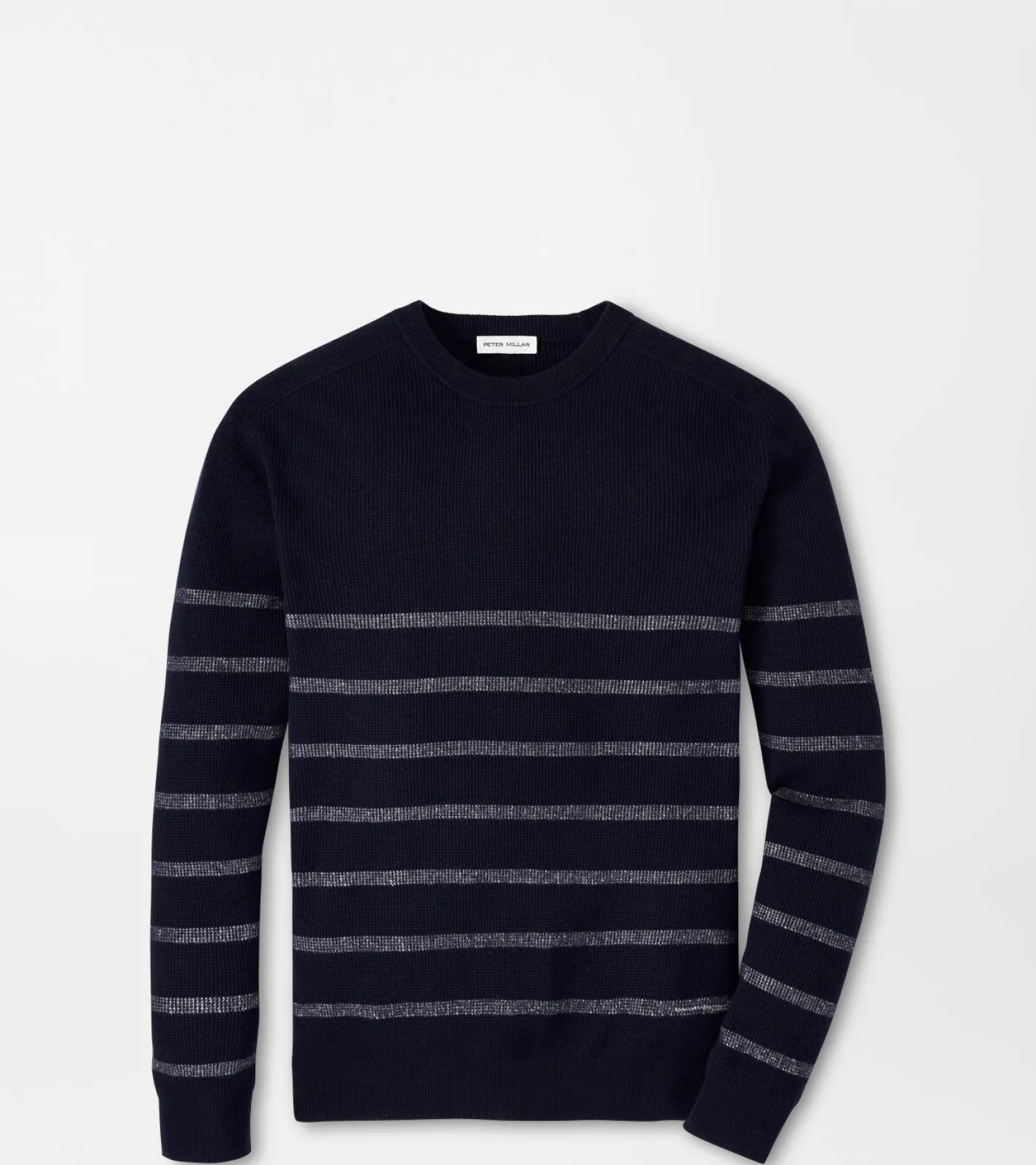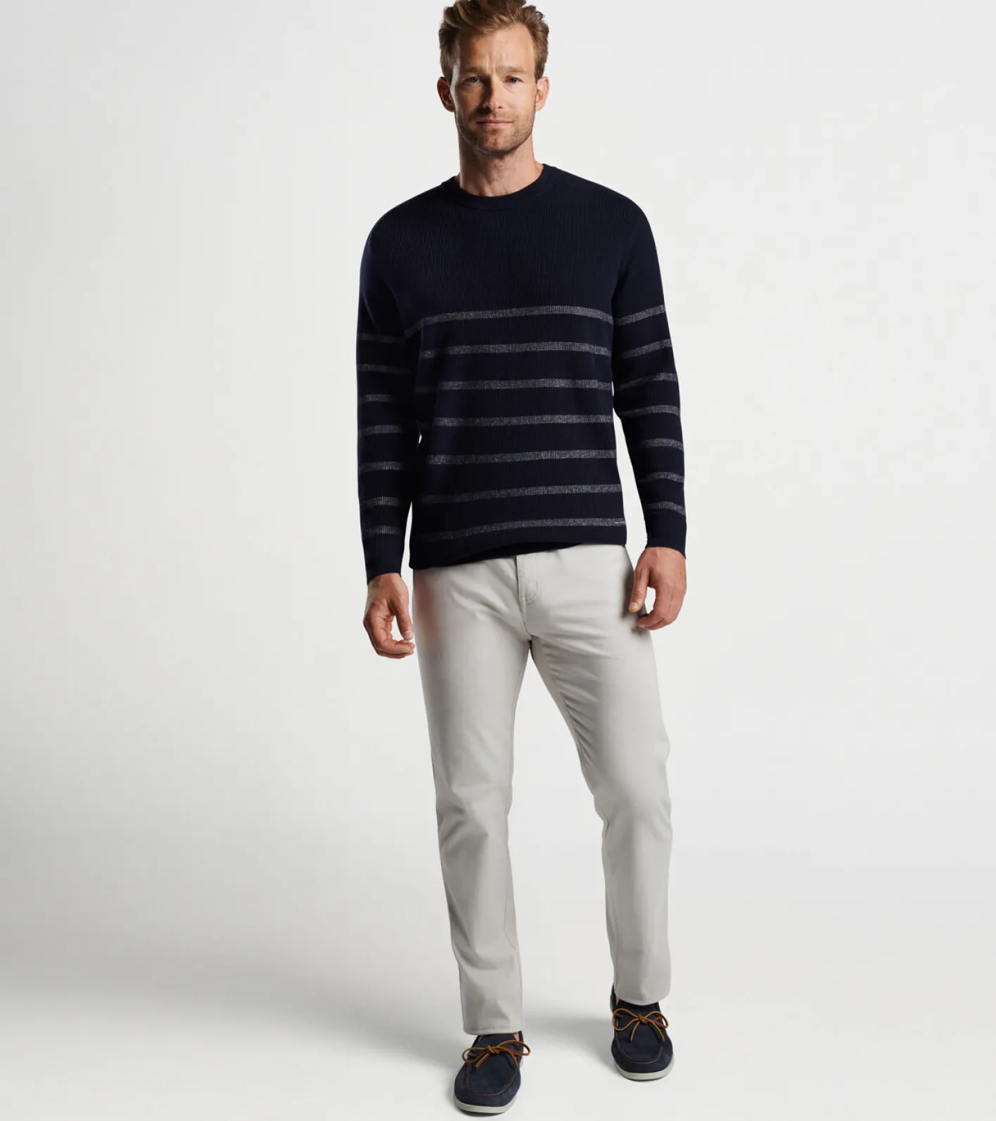 New Peter Millar Sampson Striped Crewneck Sweater Navy