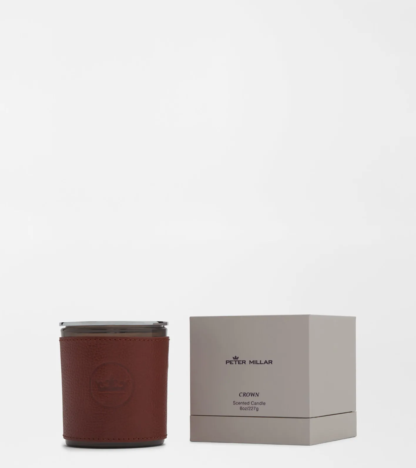 Translated from Peter Millar’s Crown cologne into a luxurious home accent, the Crown Candle manifests woody-spicy notes of birch and leather, blended with Madagascar black pepper. This hand-poured candle features a premium, debossed leather casing, impressive 40-hour burn life and a Zamac metal lid.