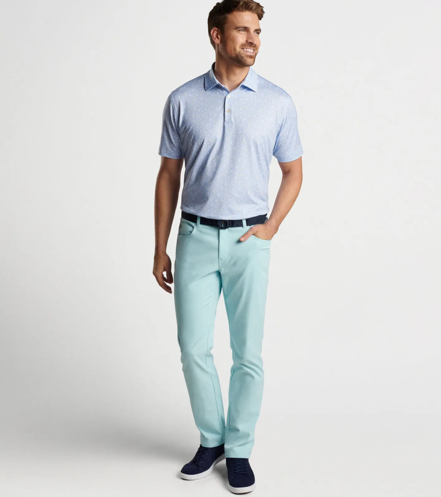 Enjoy incredible comfort wherever your day takes you in one of our signature performance polos. It’s made from an antimicrobial jersey fabric that delivers all the performance benefits you need like moisture-wicking, UPF 50+ sun protection and easy-care. Four-way stretch provides optimal mobility on and off the golf course. This polo features a custom-designed bar tool print. Finished with a Sean self-fabric collar and three-button placket.