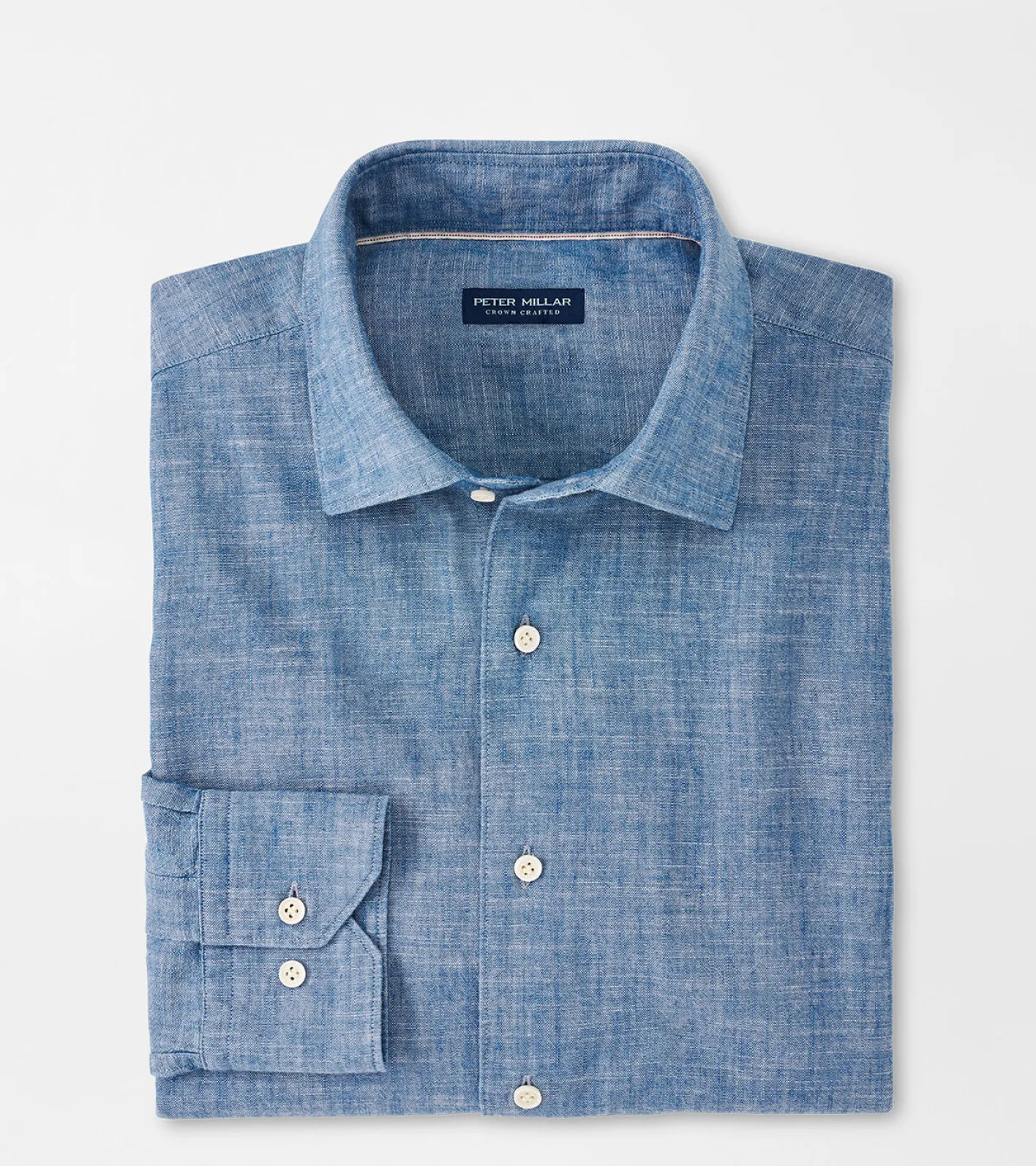 Outlet Peter Millar Japanese Selvedge Sport Shirt Light Chambray