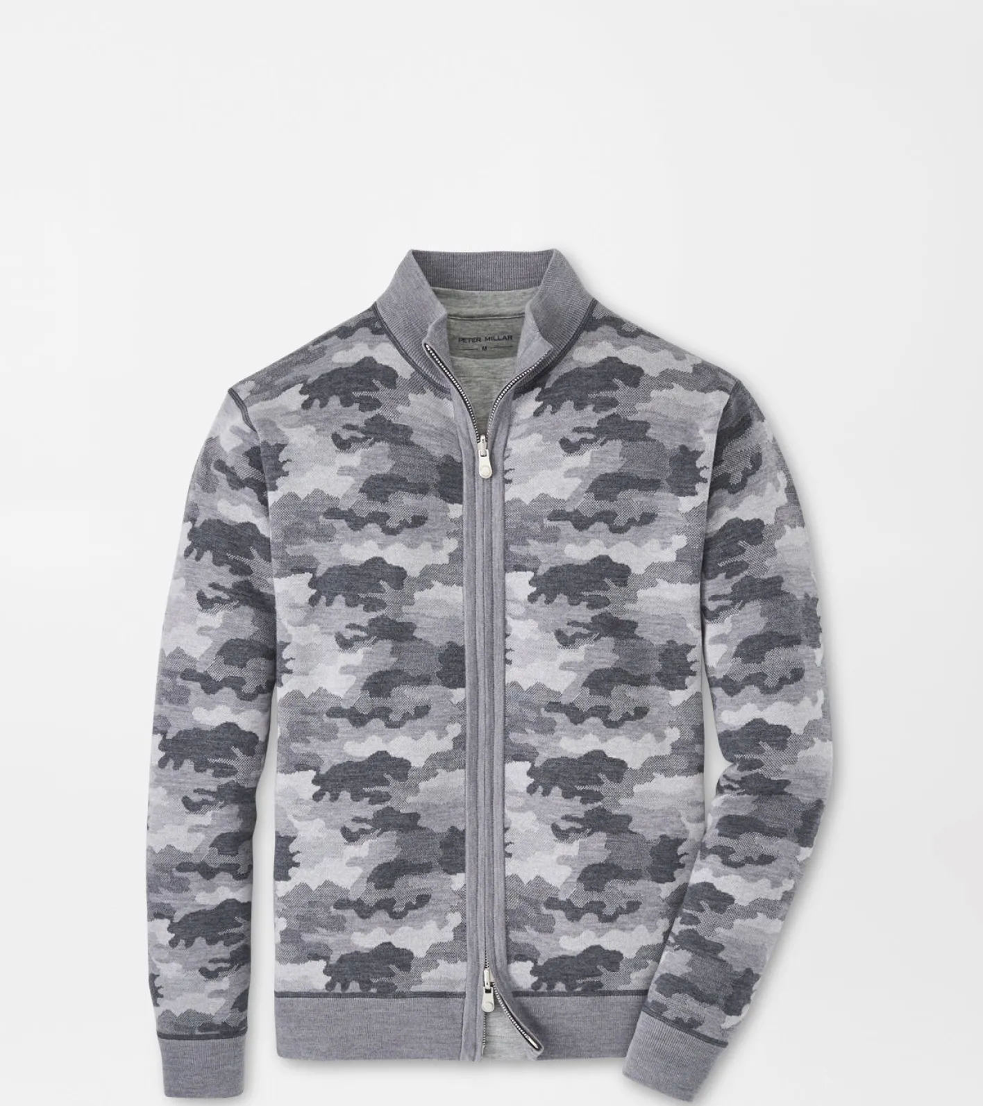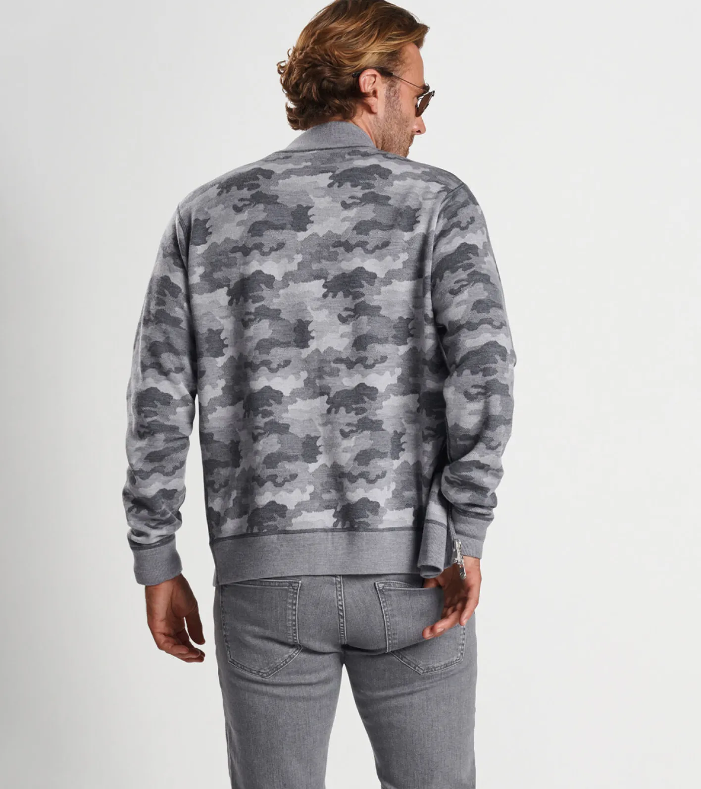 Made from a remarkably soft Merino wool in a double birdseye stitch, this fully reversible cardigan channels a classic grey color on one side and a bold camo pattern on the other. Finished with casual cover stitching and a two-way zipper.