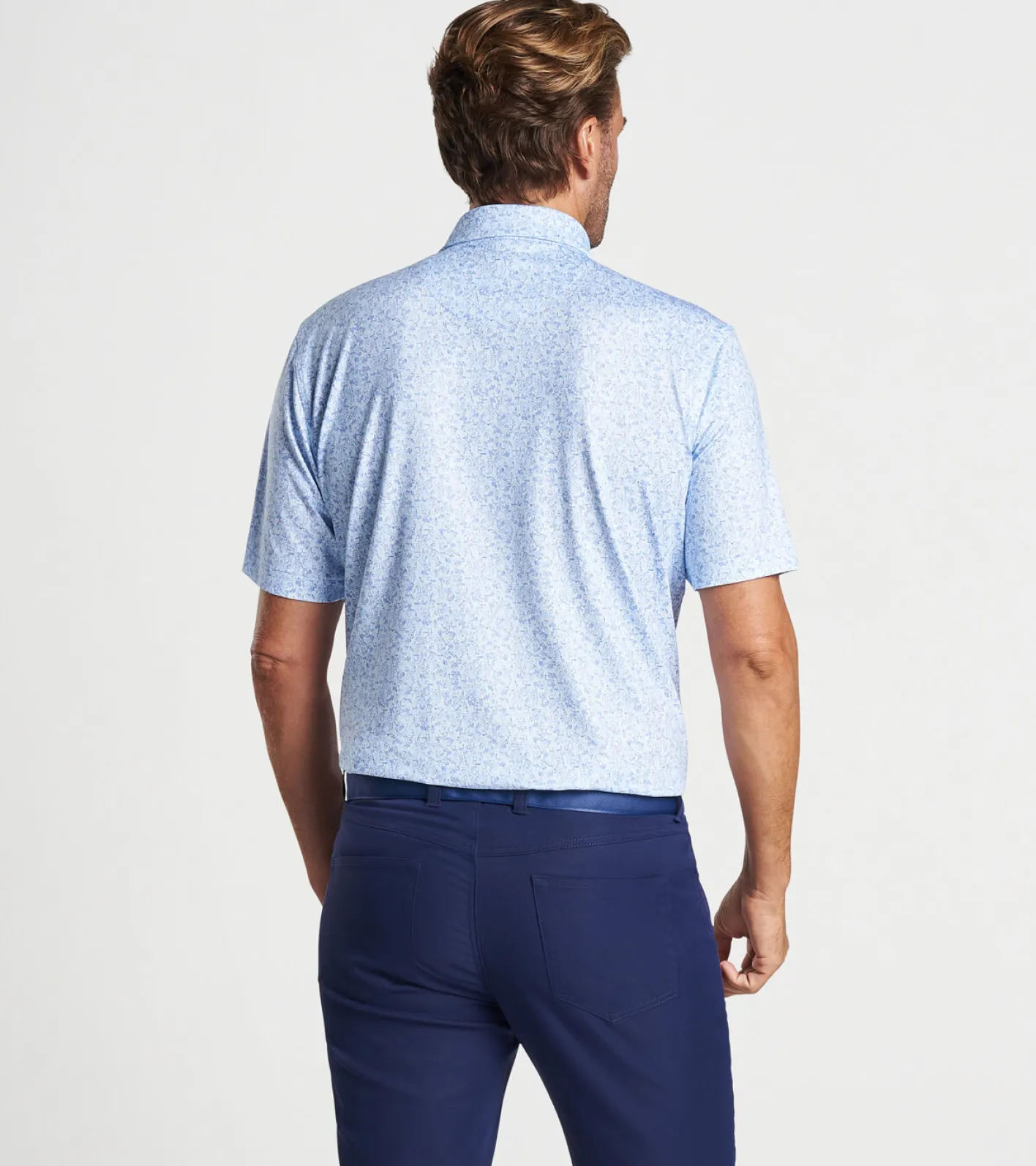 Enjoy incredible comfort wherever your day takes you in one of our signature performance polos. They’re made from a soft antimicrobial jersey fabric that features wicking, UPF 50+ sun protection and easy-care, with four-way stretch for optimal mobility on and off the golf course. This polo features our popular custom-designed Dazed and Transfused print for one-of-a-kind style. Finished with a Sean self-fabric collar and three-button placket.