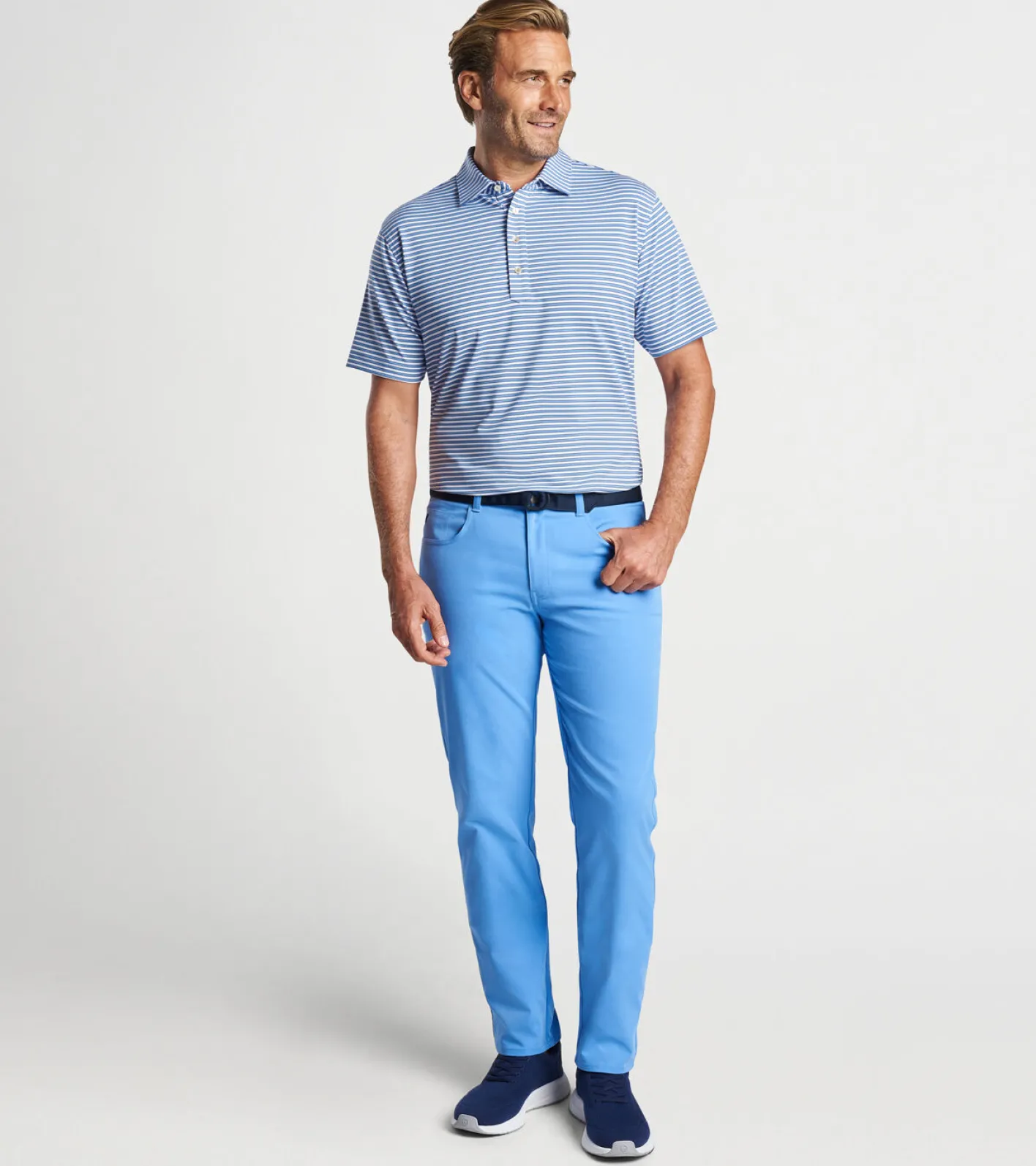 Enjoy incredible comfort wherever your day takes you in one of our signature performance polos. They’re made from a soft antimicrobial jersey fabric that features wicking, UPF 50+ sun protection and easy-care, with four-way stretch for optimal mobility on and off the golf course. Finished with a Kelly hard collar and four-button placket.