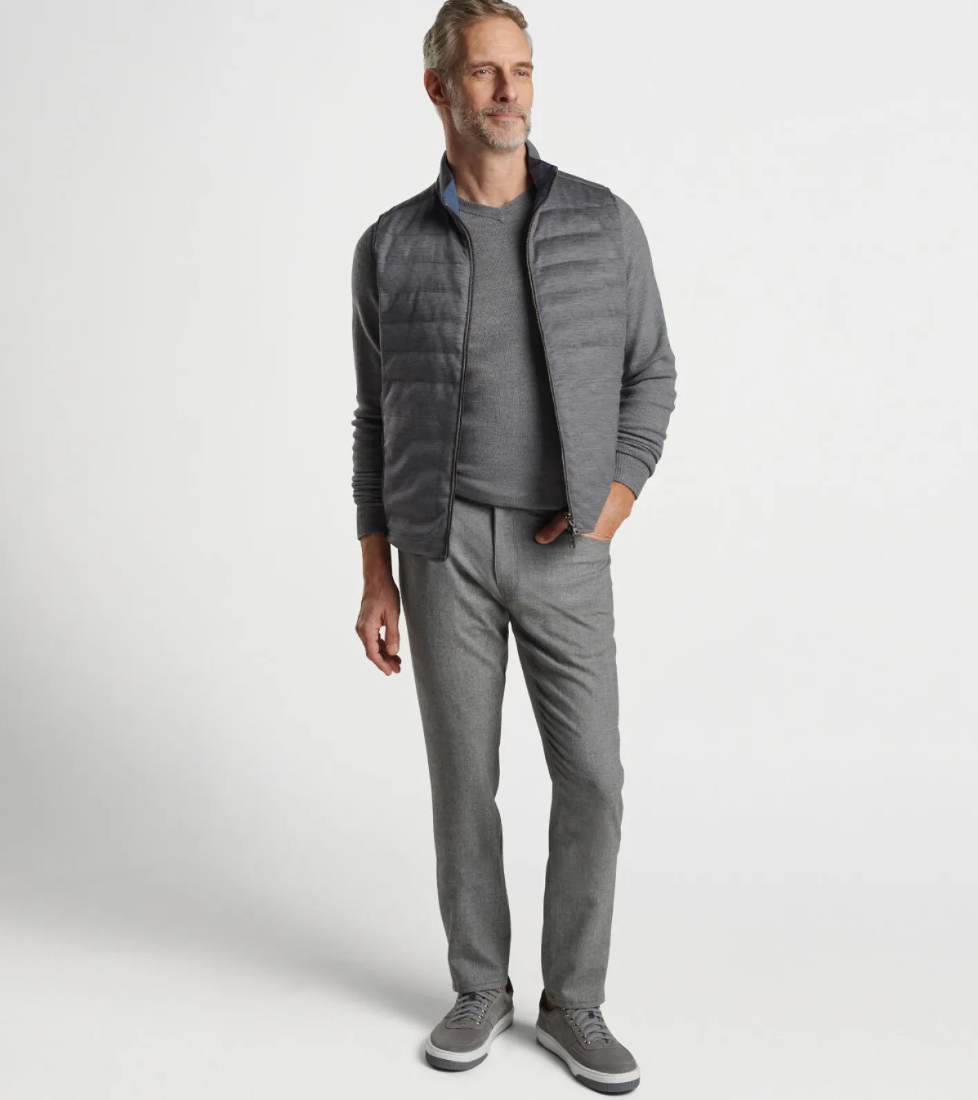 DescriptionThis new reversible vest features a channel-stitched wool on one side and a sleek, streamlined performance fa…